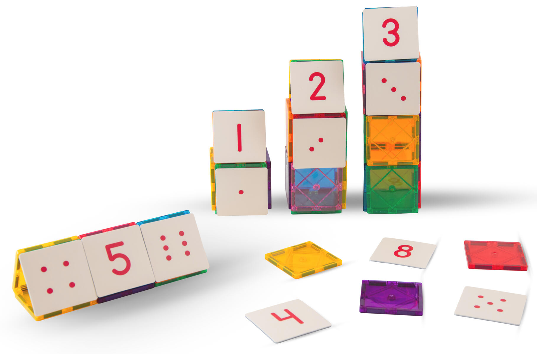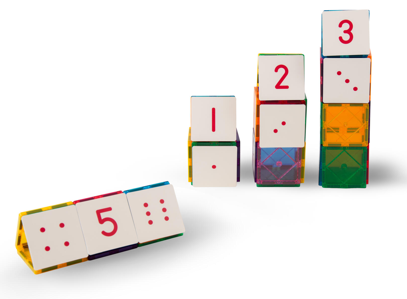 Bygg olika konstruktioner där ni kan träna på talföljd genom att sätta ut siffror och antal på de magnetiska byggplattorna. Det går också bra att sätta siffrorna direkt på en magnetisk yta som t.ex. en whiteboardtavla. Lek och träna siffror och antal samtidigt!
