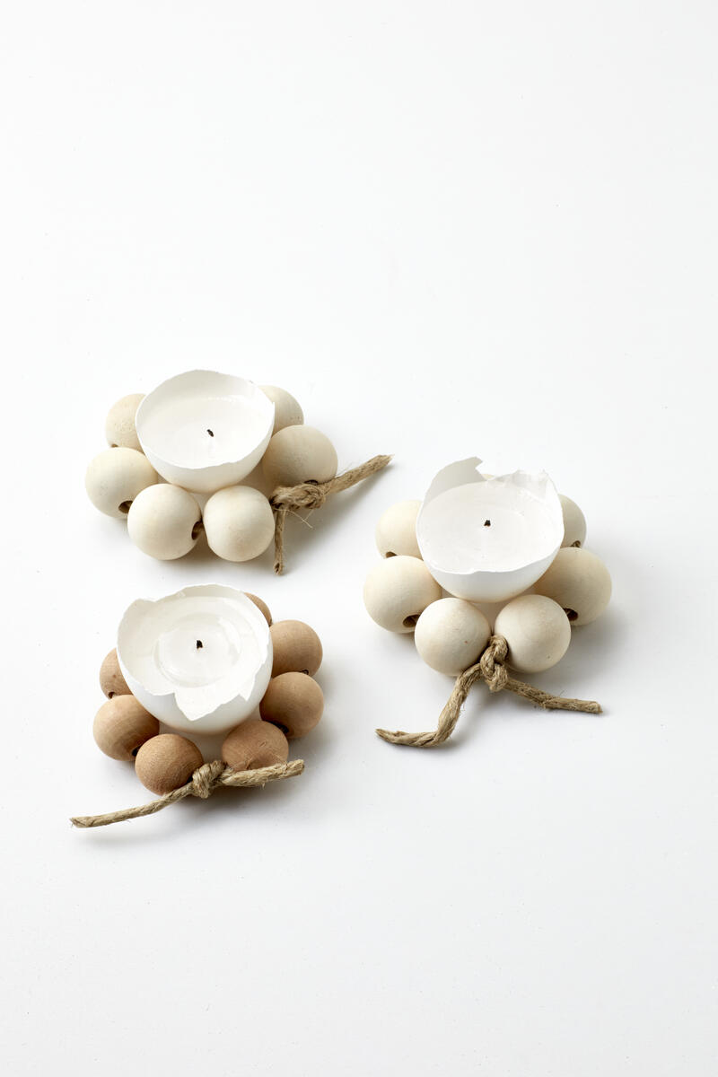 - Äggkoppen är gjord av ihopknutna träkulor.