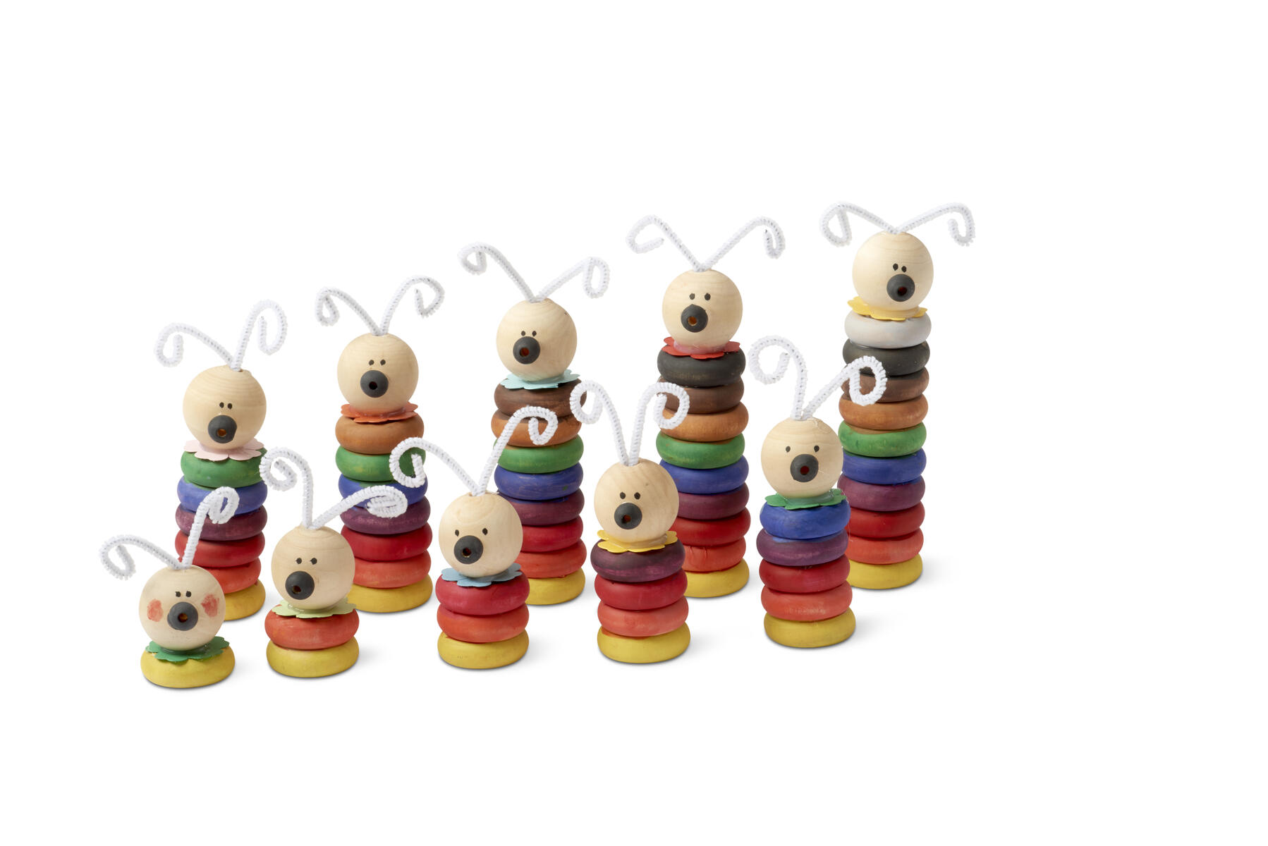 Trä på trähjul. Välj vilket tal din figur ska representera och trä på det antalet trähjul.