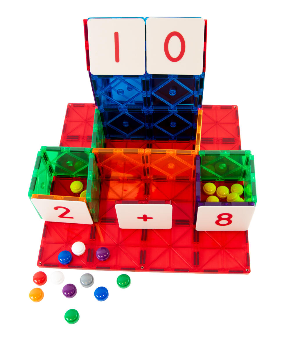 - Kombinera Mag Genius byggbitar och Mag Genius siffror för att på ett lekfullt sätt träna på tiokompisarna. Komplettera med valfritt material som plockisar. Vi har använt räkneknoppar.