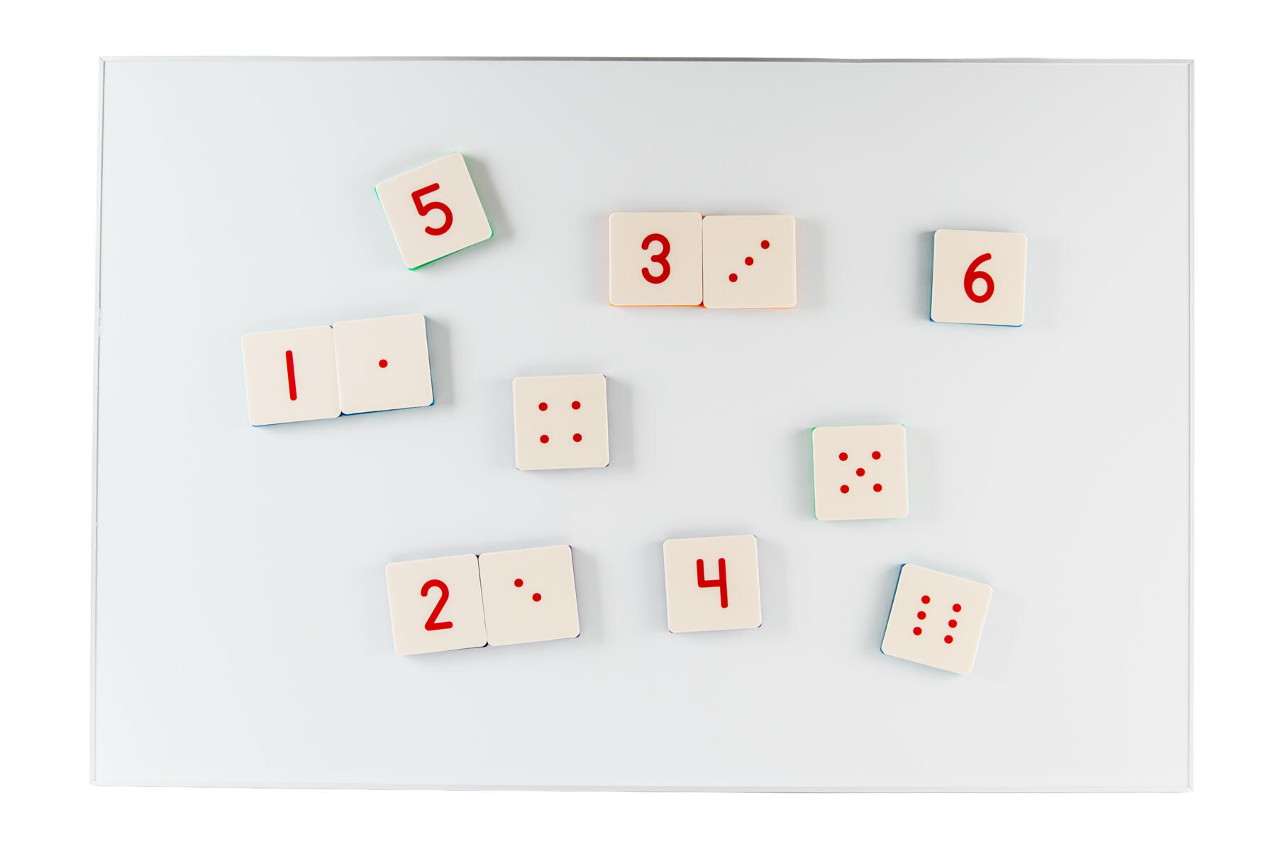 - Låt barnen para ihop siffra och antal (i form av prickar) genom att lägga dem bredvid varandra/bygga ihop dem.