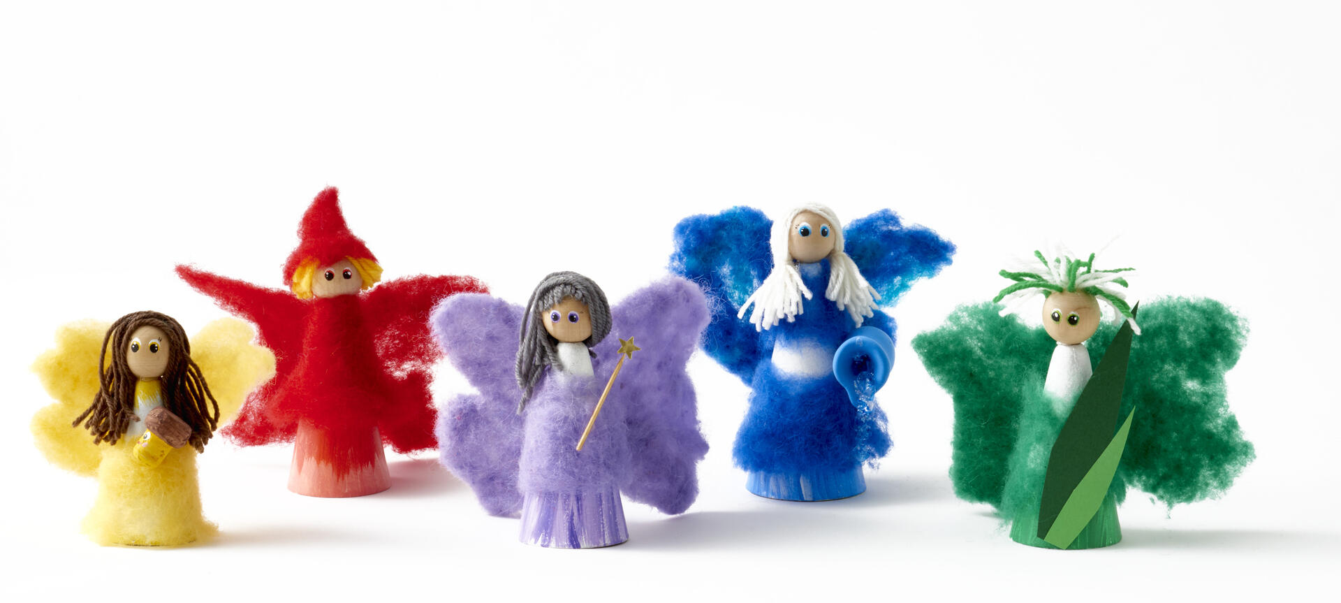 Måla pappkonerna med vitt och måla sedan nedre delen i älvans färg.