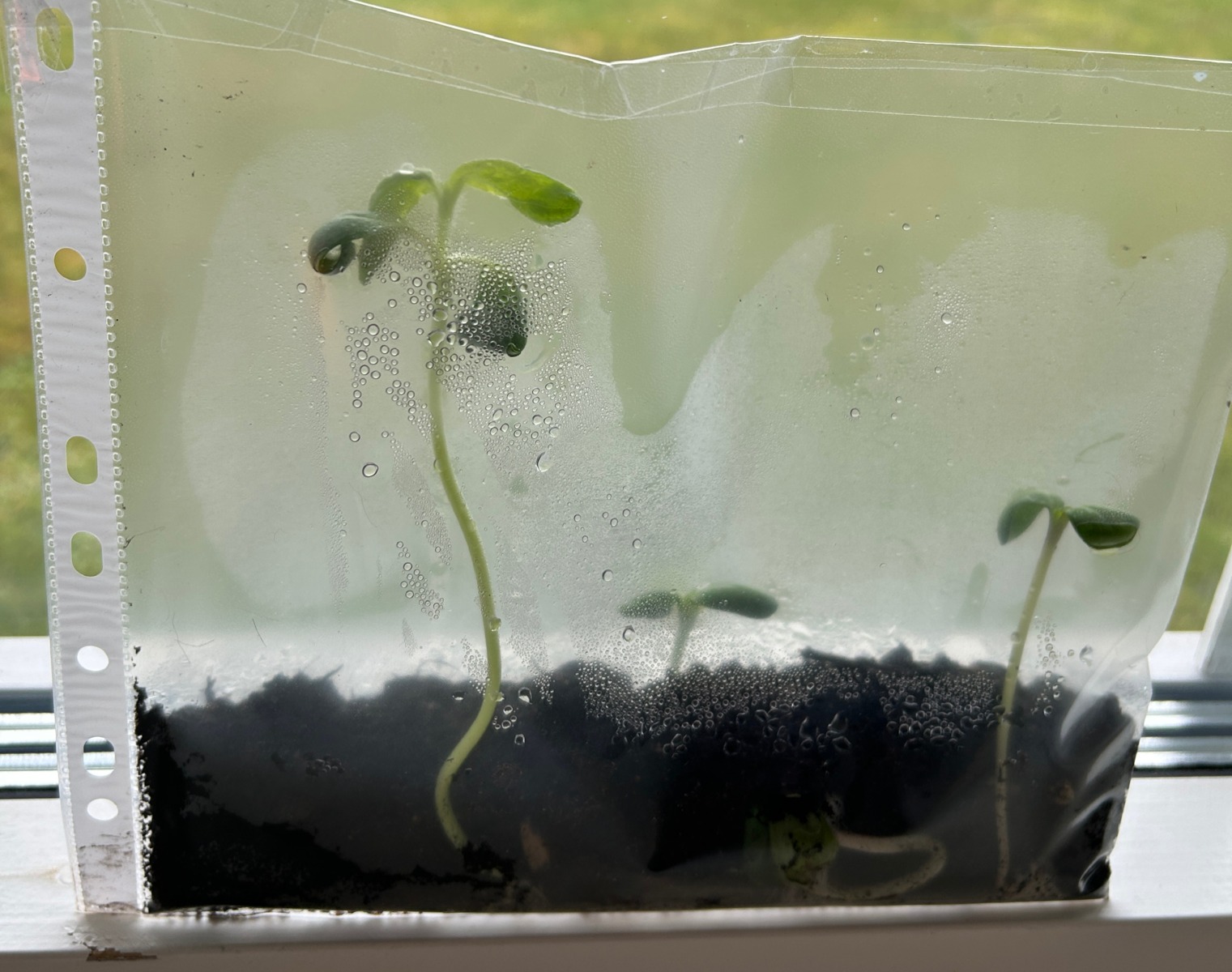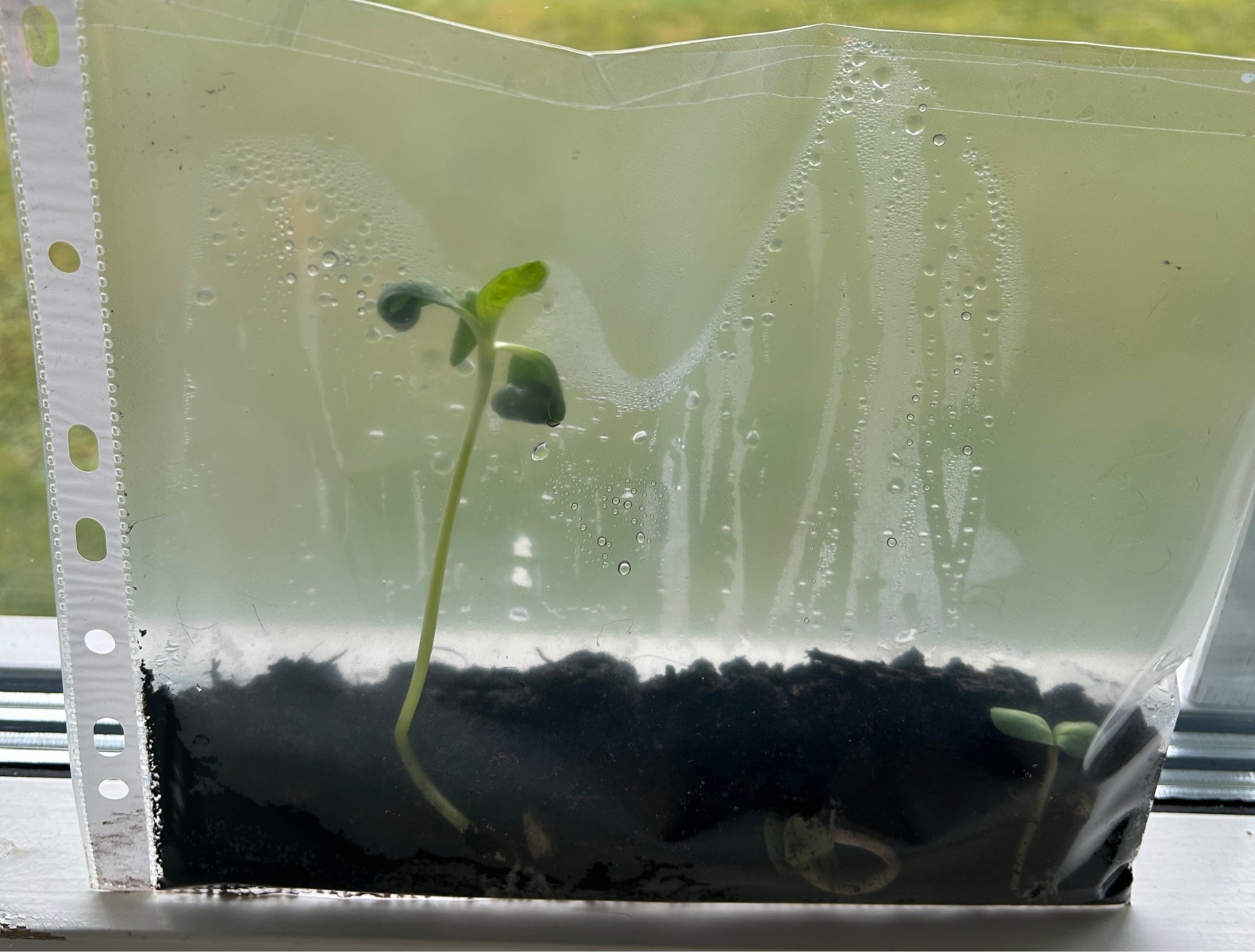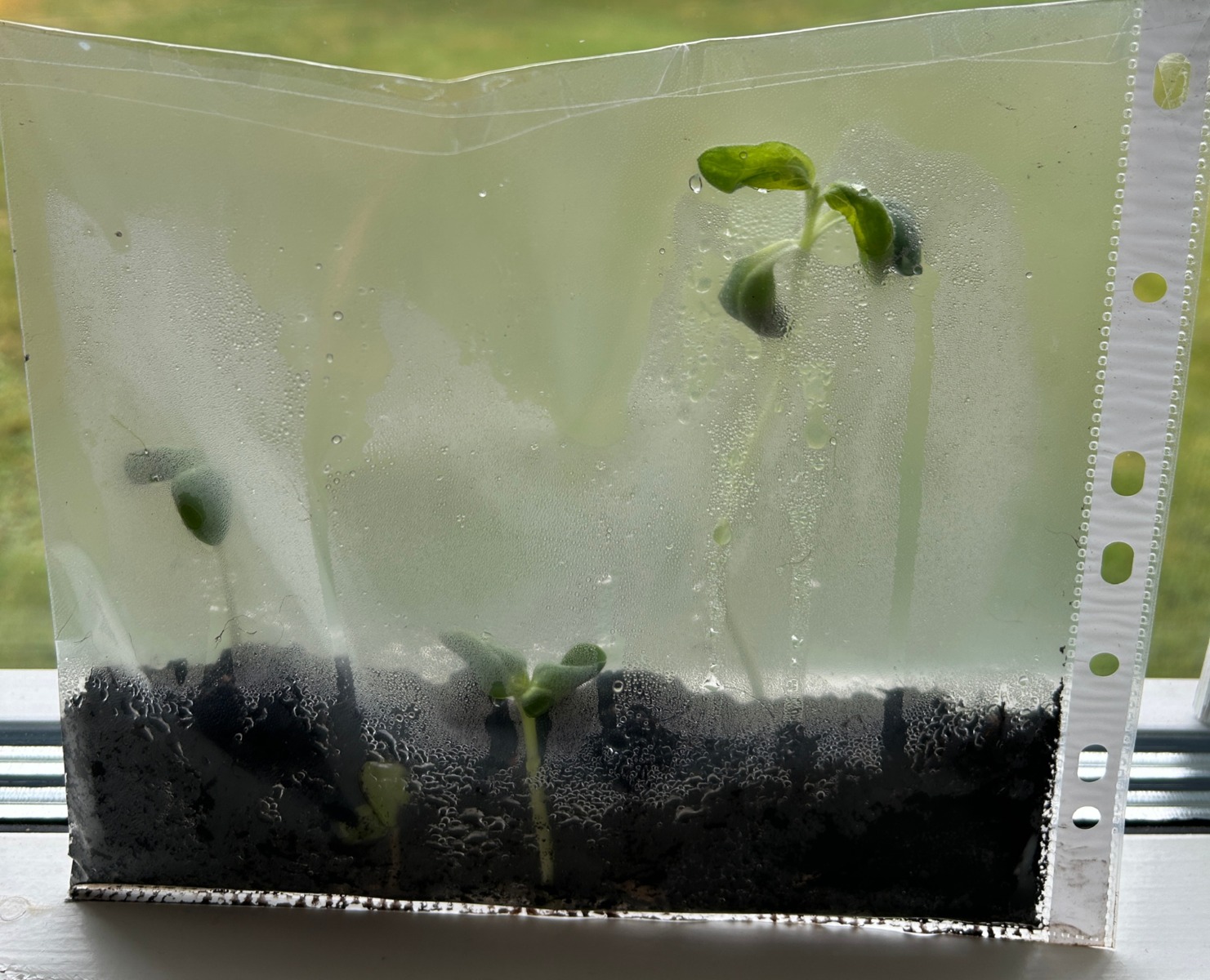 - Vattna så att jorden blir genomfuktad. Lättast är att använda en sprayflaska och spraya ner i plastfickan.