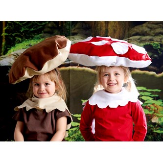Klipp ut en remsa filt, ca 10 cm bred och 60 cm lång. Beige för karljohansvampen och vit för flugsvampen.