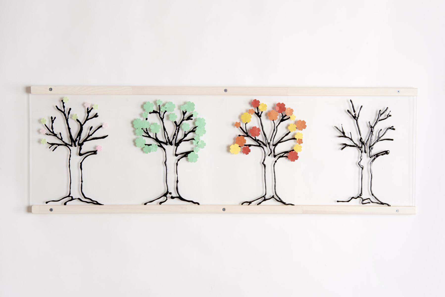 Försök sedan dekorera träden så de bildar trädets olika utseende beroende på årstid.