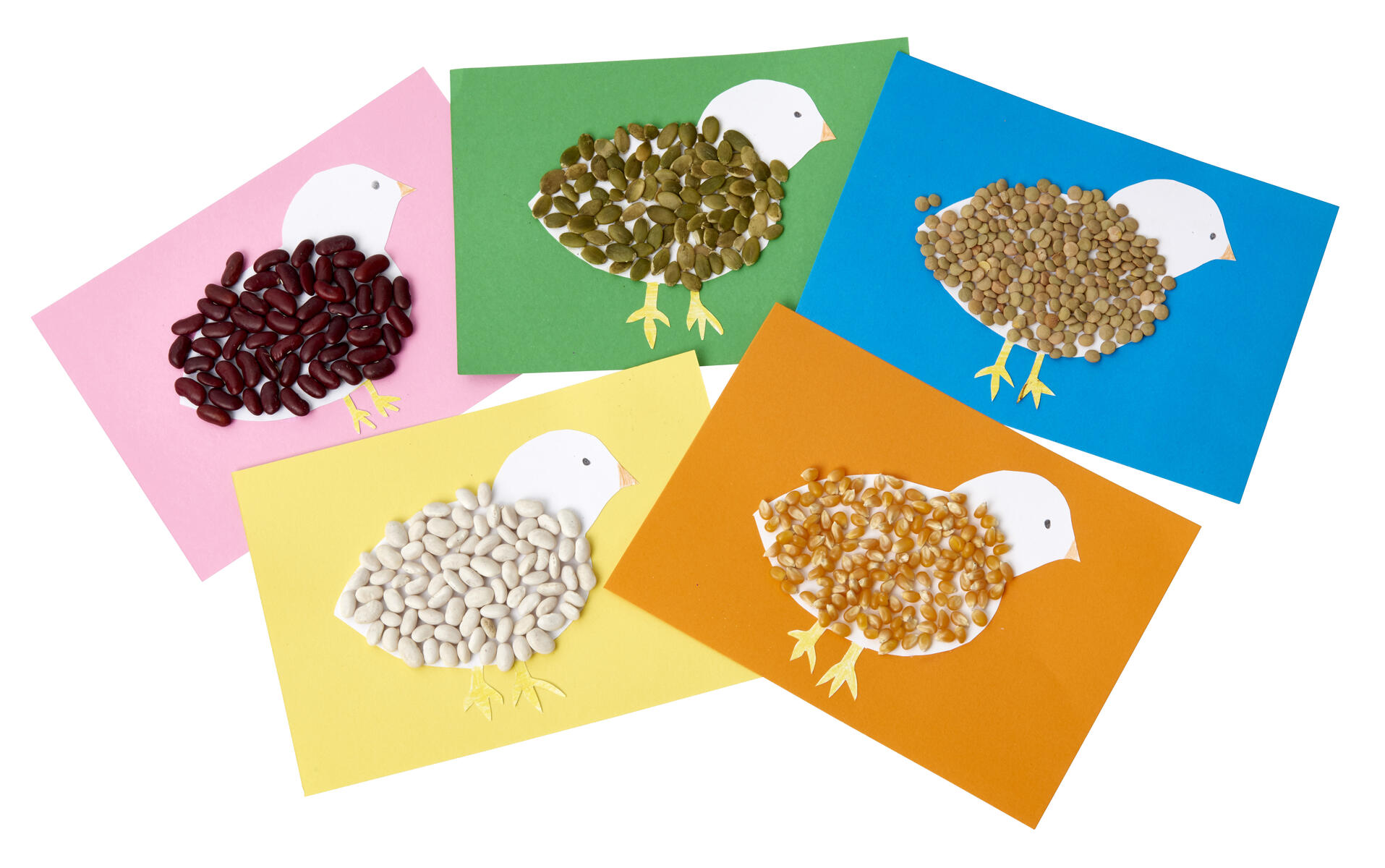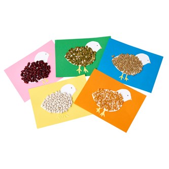 Klistra sedan fast kycklingen och fötterna på ett kort som klipps ut av färgad kartong.