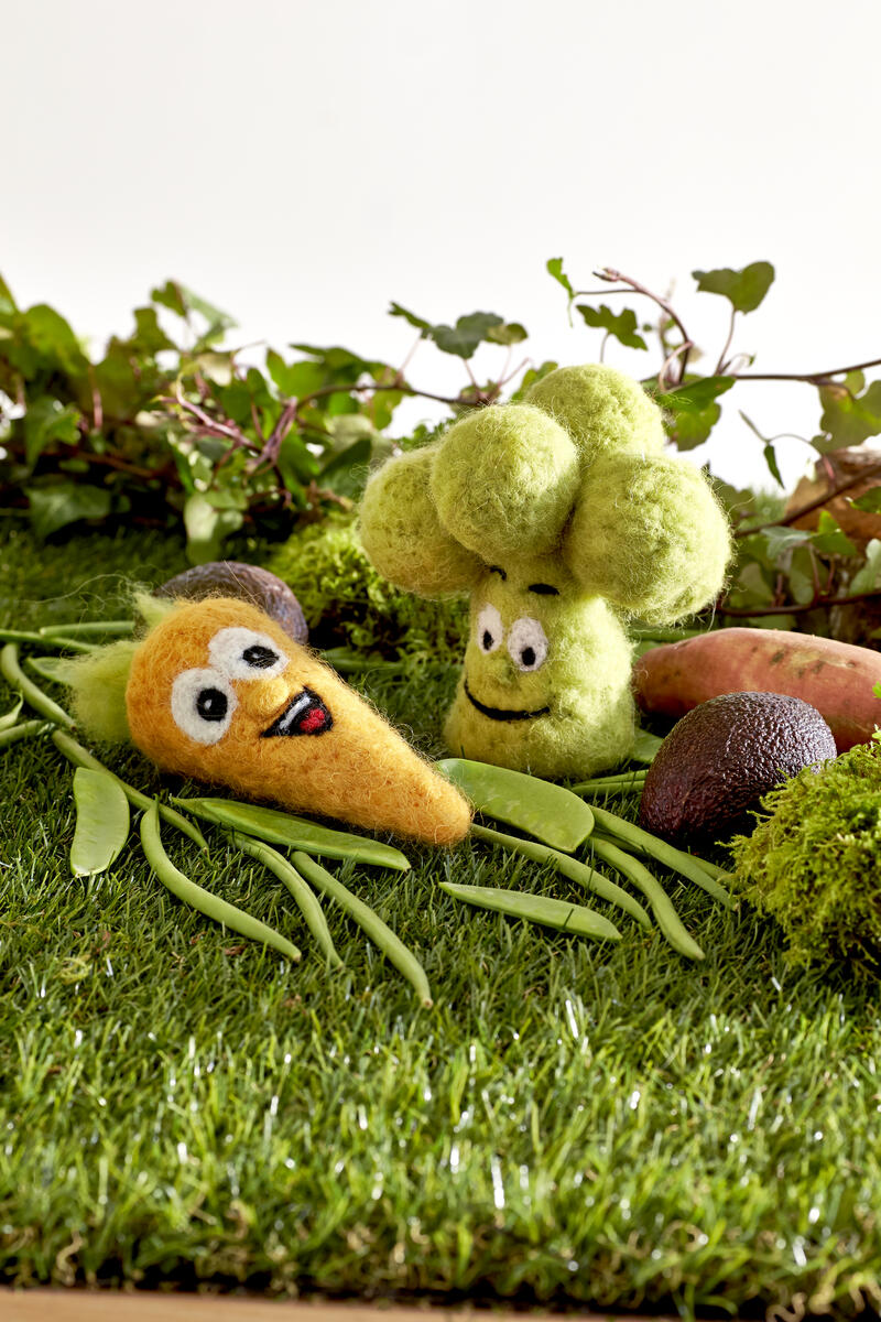Tova dem till grönsaker. Även mun och ögon tovas direkt på konen.