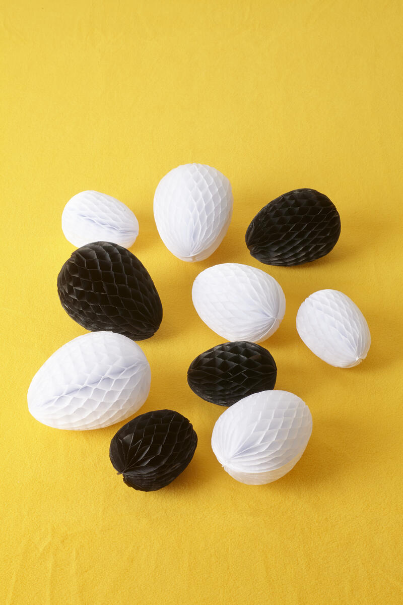- Klipp ut samma former i dragspelspapper; låt ägget "stå" så att det blir tvärrandigt i dragspelspappret.