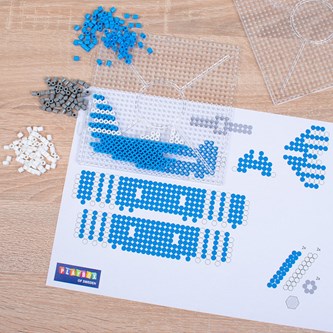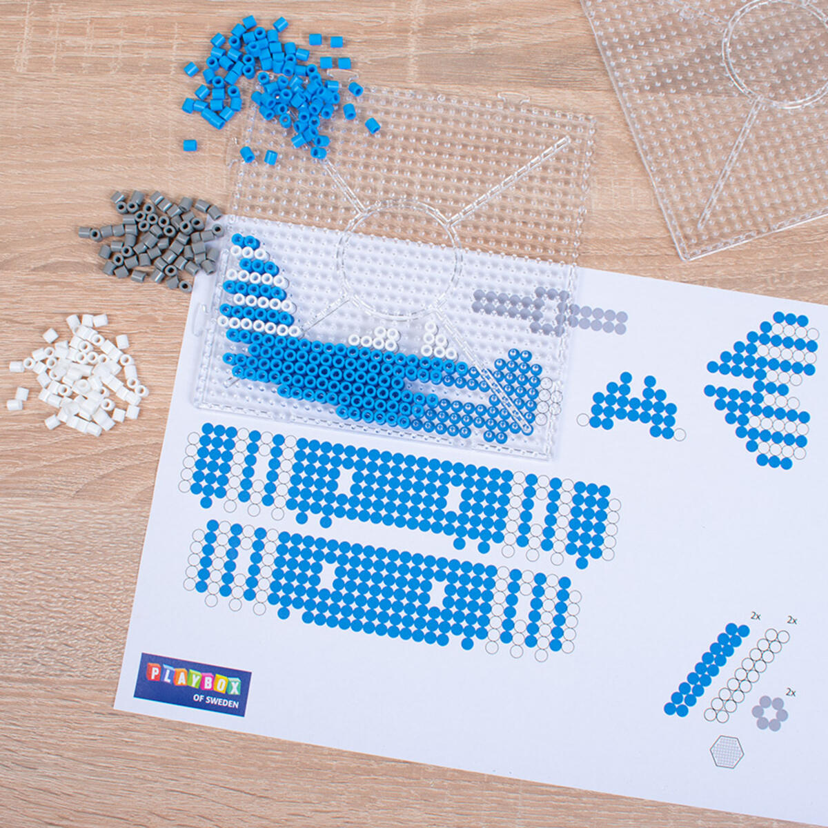 - Skriv ut mönsterark för alla delar. PDF:en för mönstret kan du ladda ner här ovanför. Lägg genomskinliga pärlplattor över mönsterarket och pärla alla motiv.