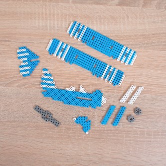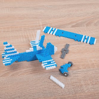 - Stryk med strykjärn tills alla pärlorna smälts ihop. OBS! Ta hjälp av en vuxen när du ska stryka. Både strykjärnet och pärlorna blir mycket varma. Lägg någon tungt över och låt dem svalna.