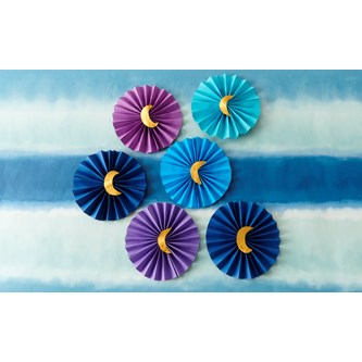 - Vik båda de vikta A4-papperen på mitten så att de bildar varsin solfjäder. Limma fast ändarna med varandra så att båda solfjädrarna tillsammans bildar en cirkel.
