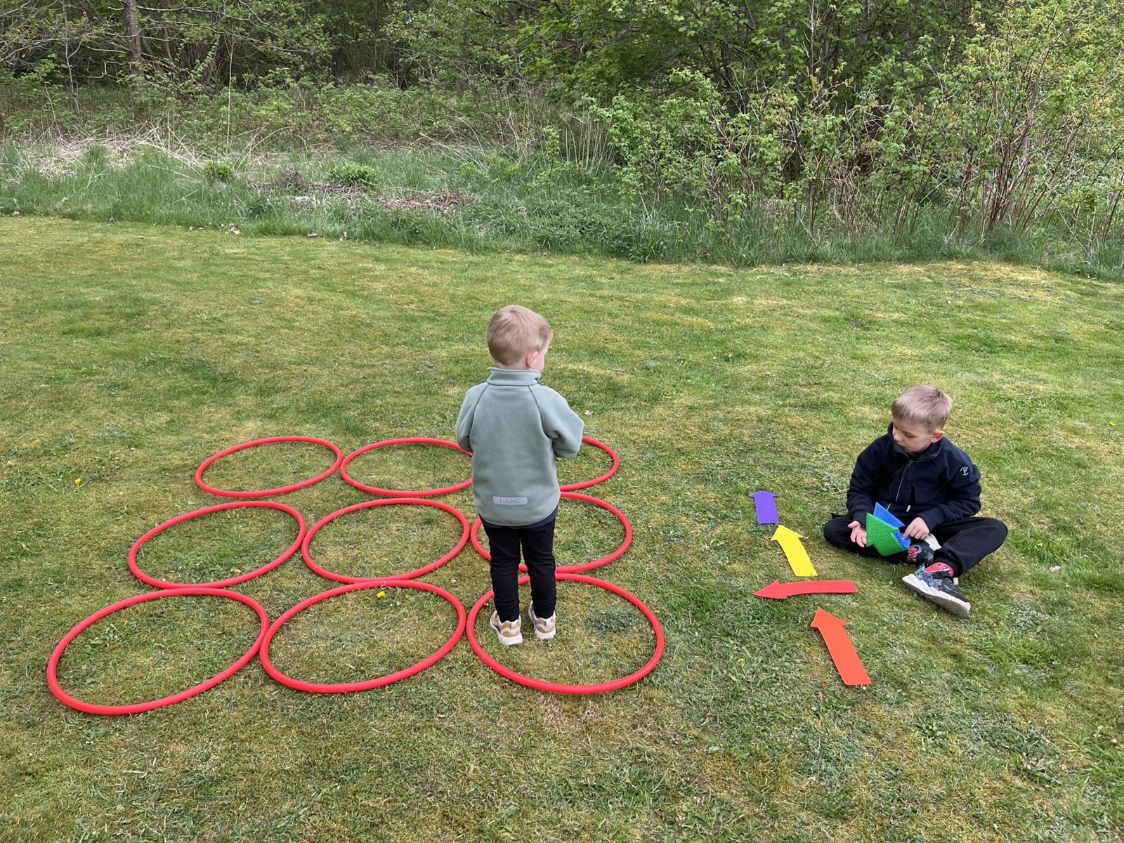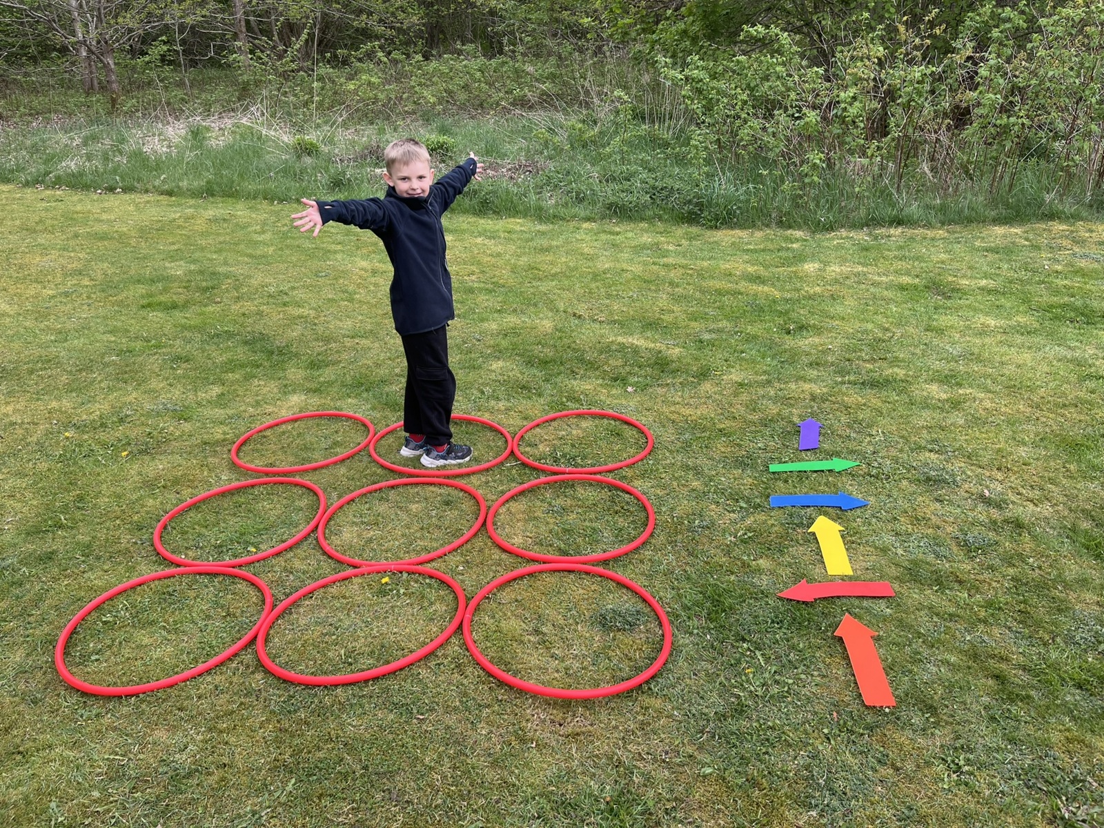 Lägg ut rockringarna i ett rutmönster, 3x3.