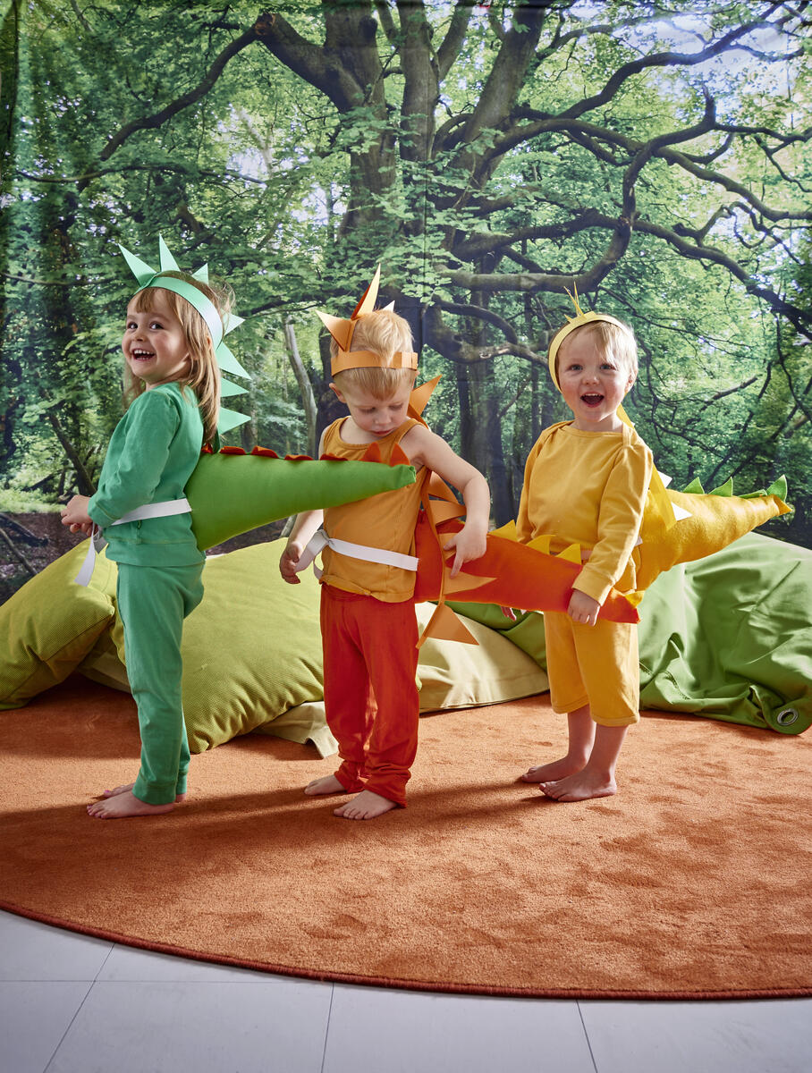 För taggarna på svansen, klipp ut trianglar av dekorationsfilten. Nåla sedan fast dem.