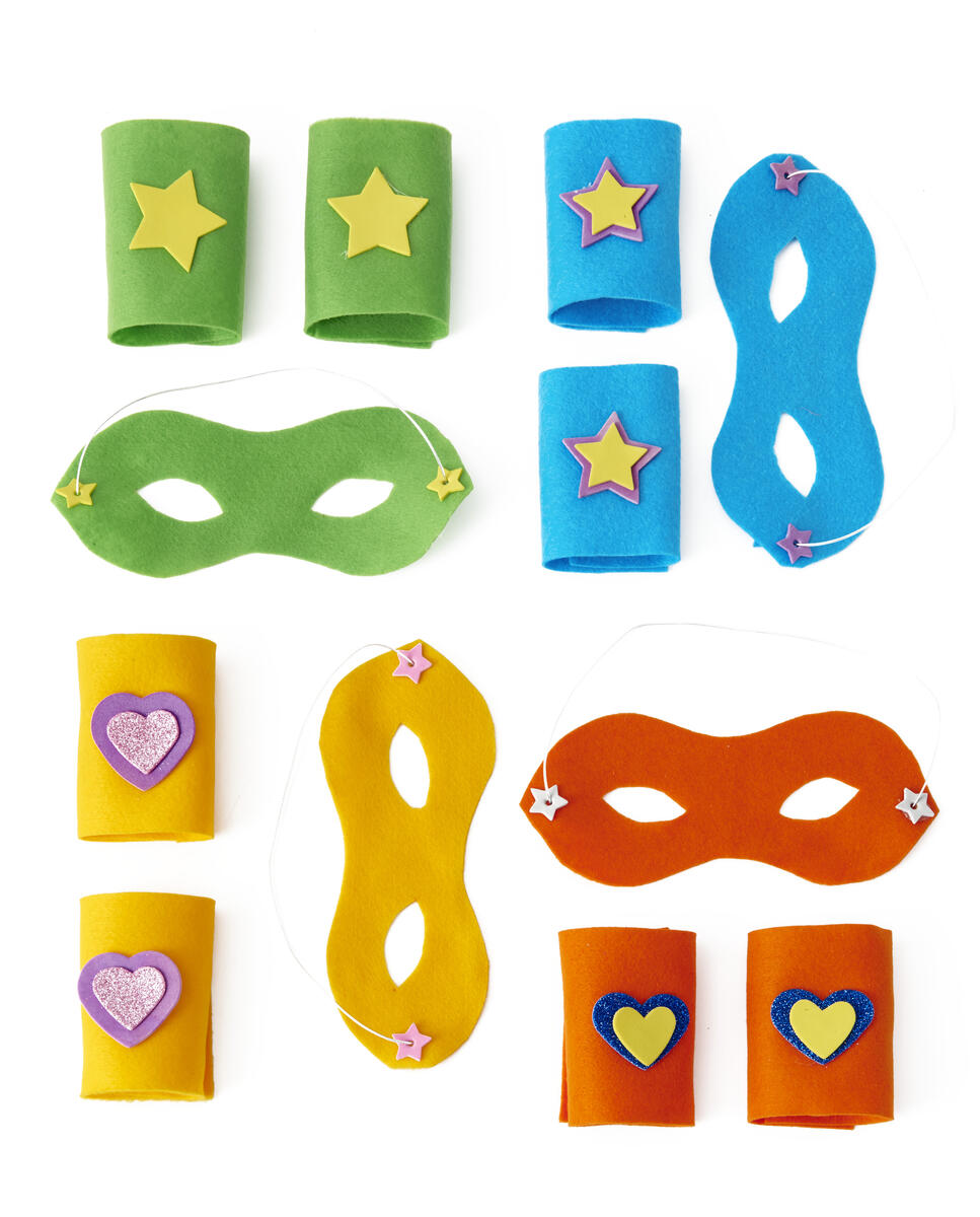 Superhjältemask och armband av filt