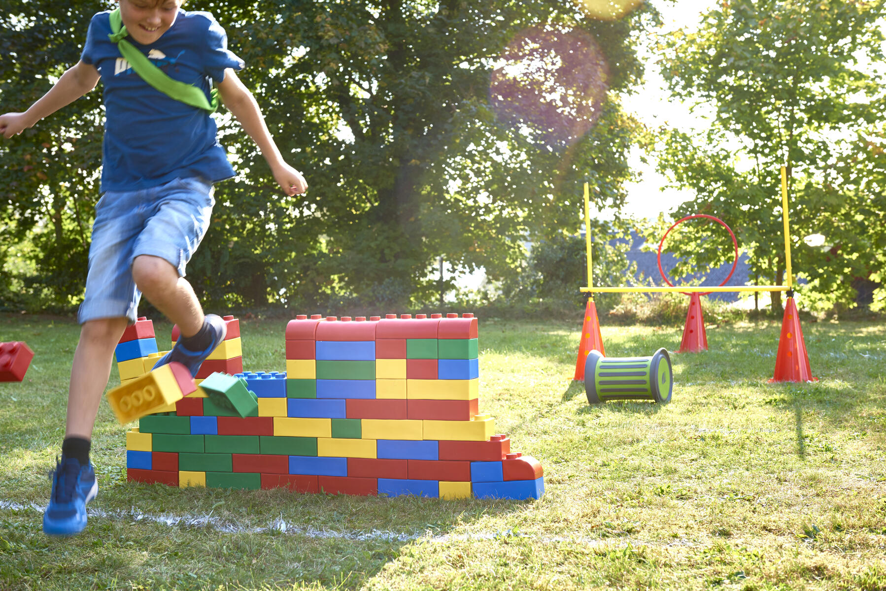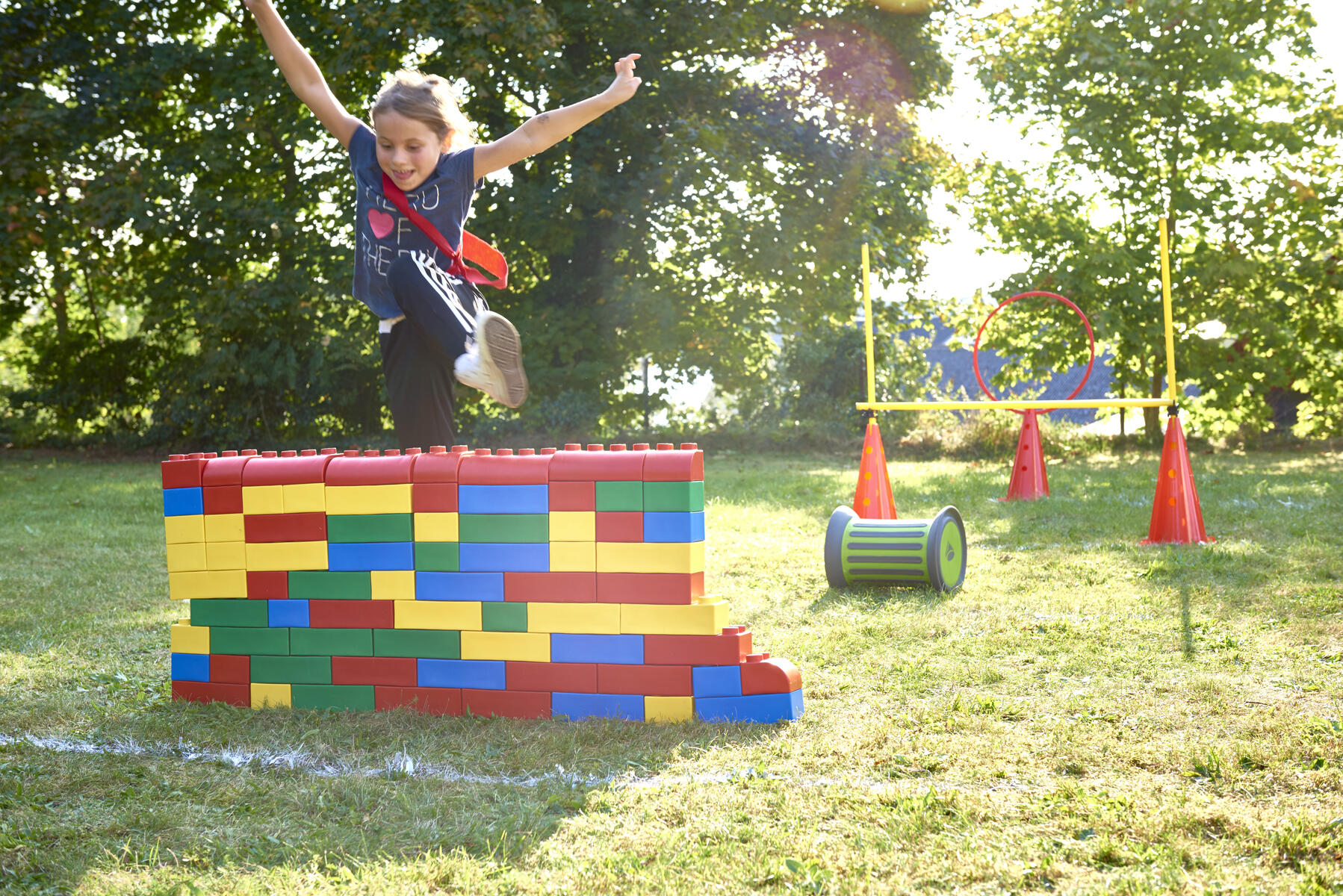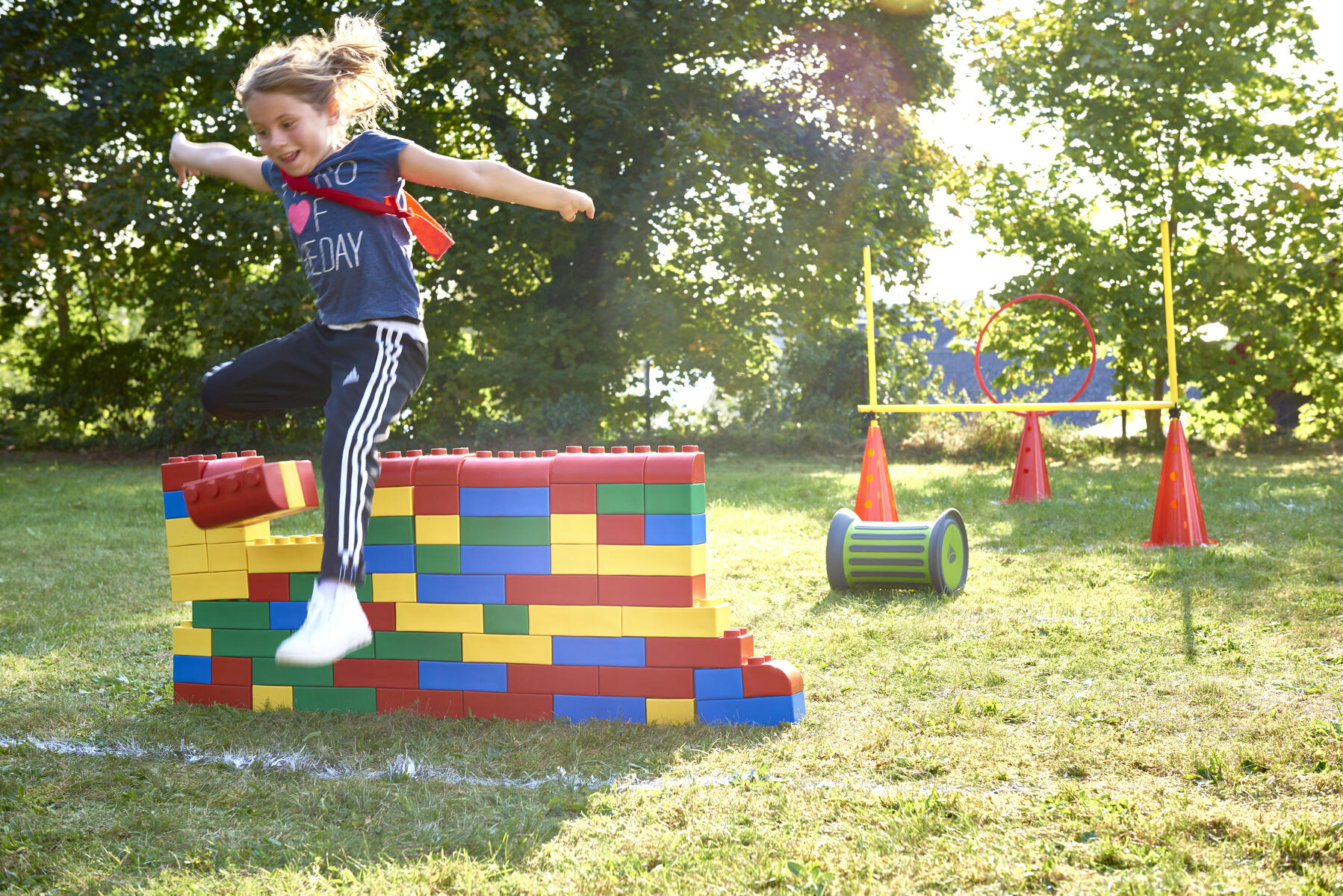 Bygg upp två parallella banor. Vem tar sig genom gatloppets hinder fortast?