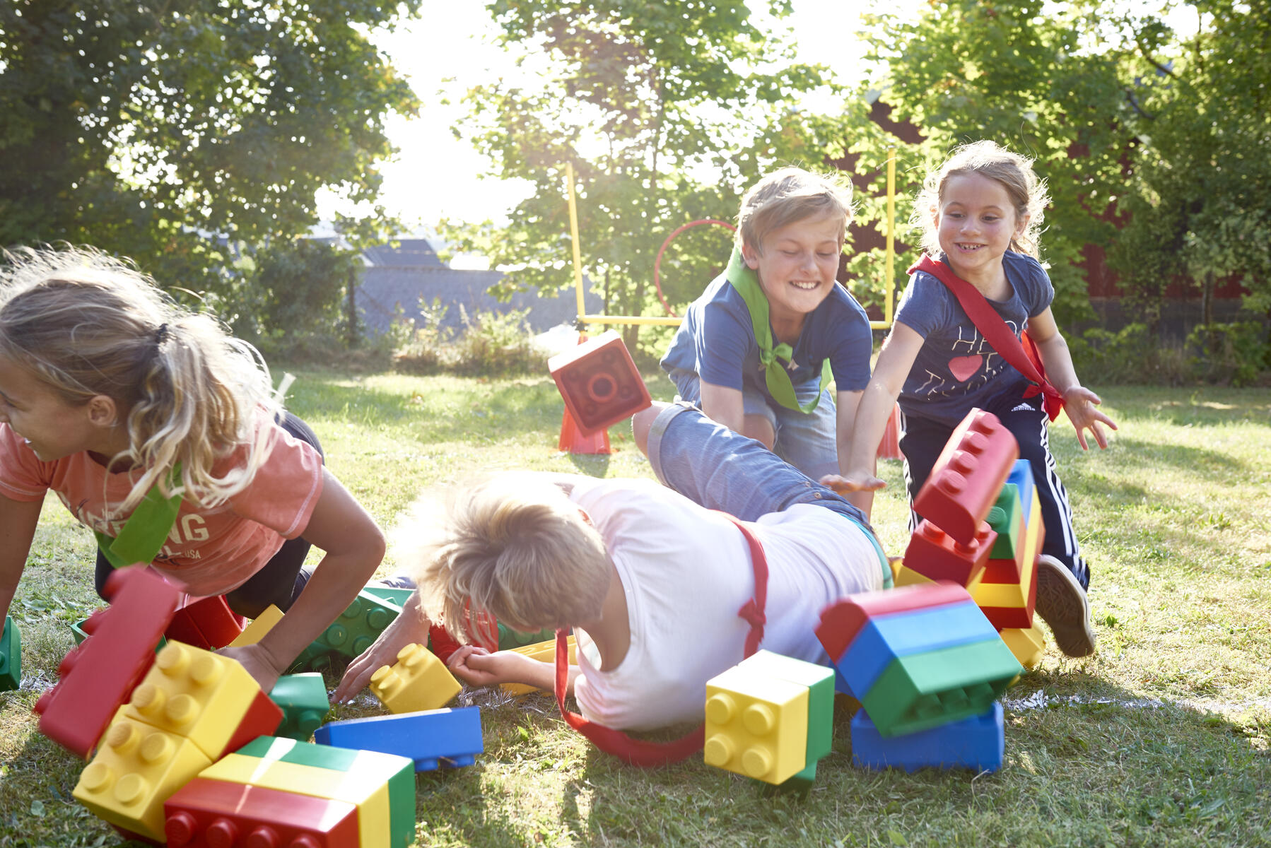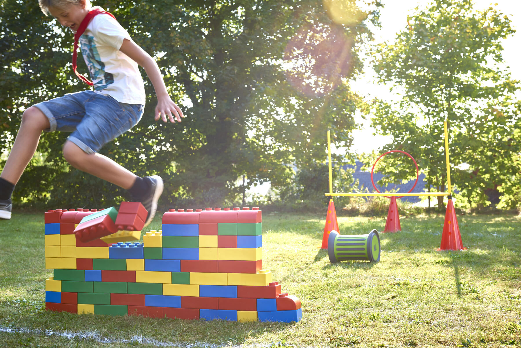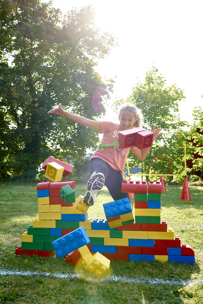 Bygg upp två parallella banor. Vem tar sig genom gatloppets hinder fortast?
