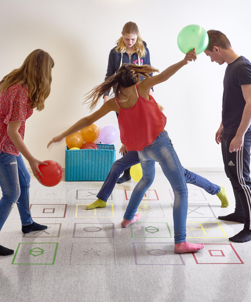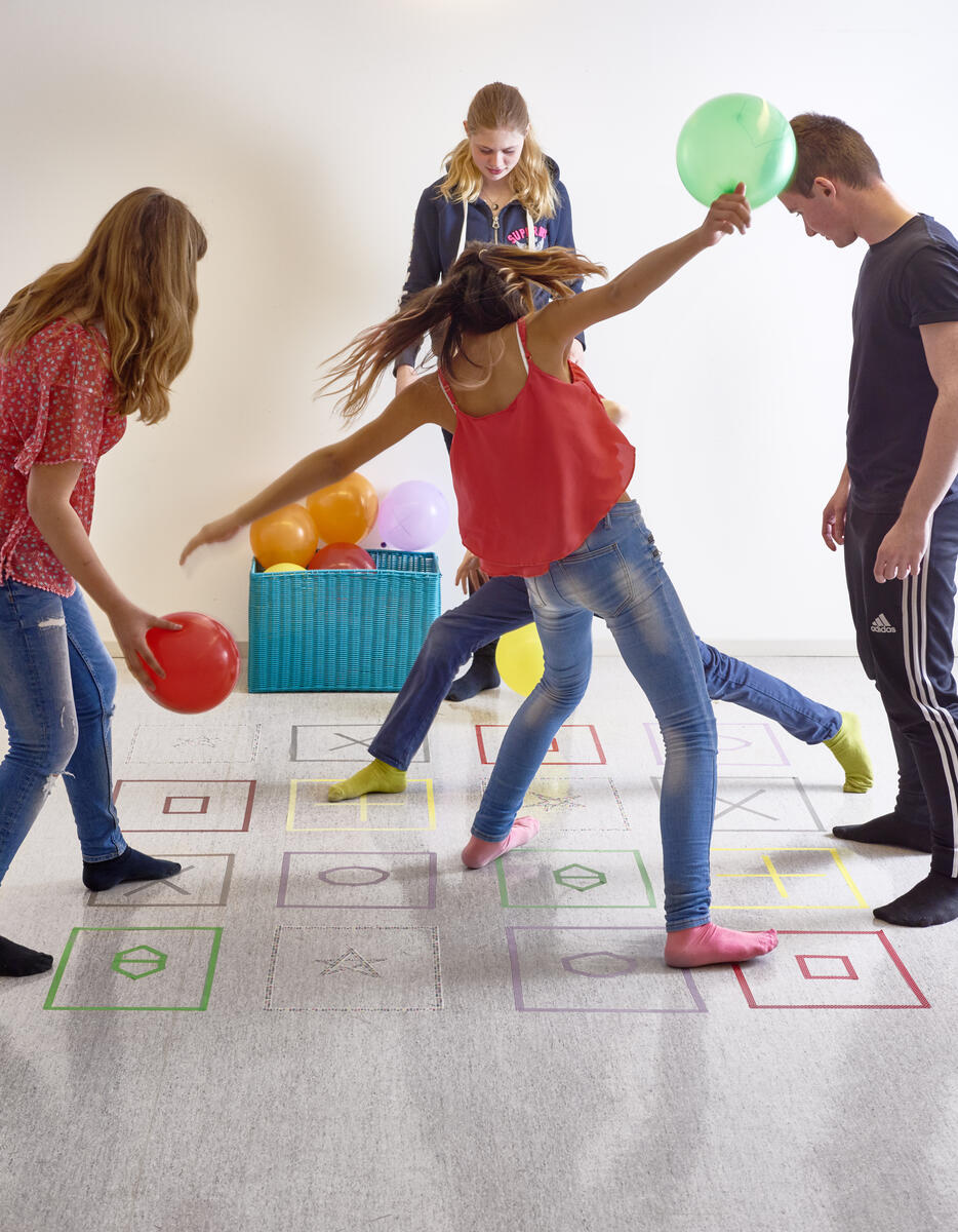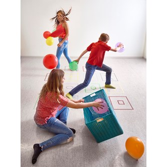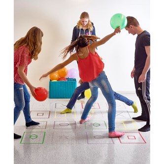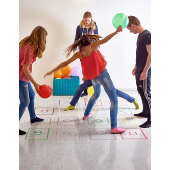 När det är kompisens tur igen, måste ena benet vara kvar på rutan och flytta därefter andra benet till det nya mönstret.