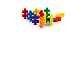 - Ställ 10 PLUS-PLUS-klossar på högkant i en triangel med spetsen mot spelarna.