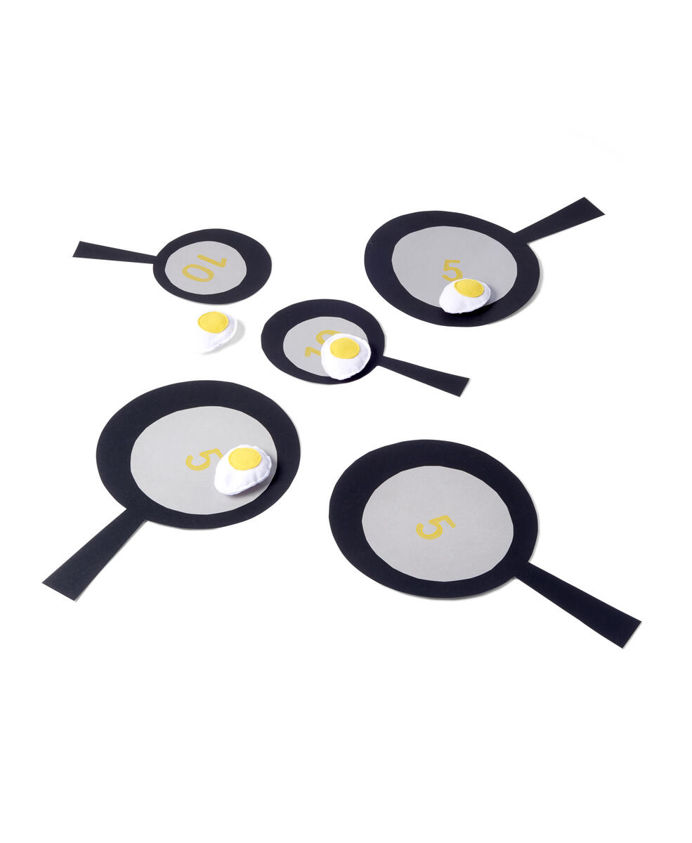 - Placera ut stekpannorna och kasta äggen i dessa. Man får det antal poäng som står i pannan.