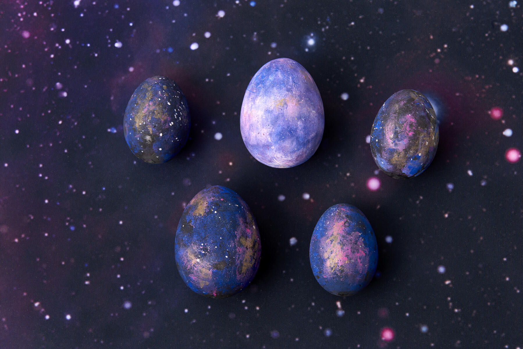 - Ta en pensel och skvätt lite vit färg på äggen för att skapa illusionen av stjärnor.