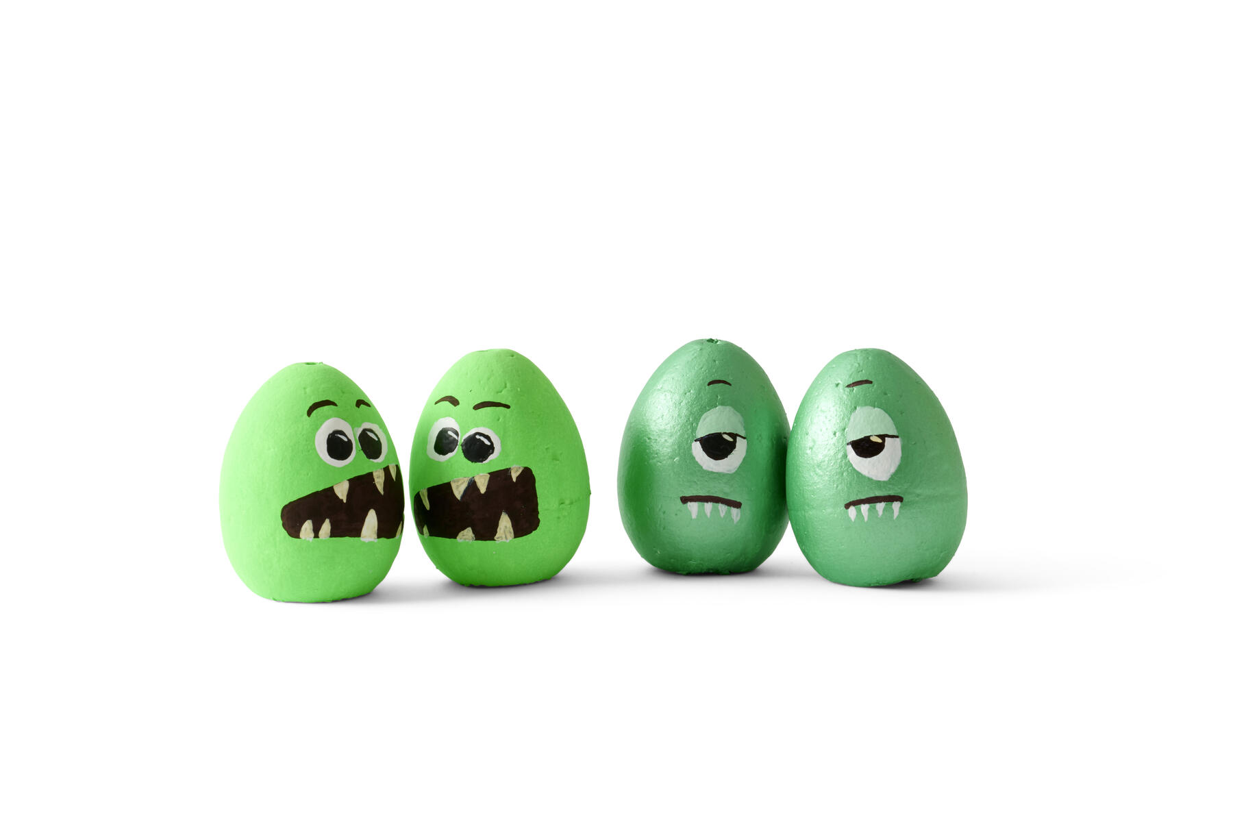- Måla ägg i neongrön eller pärlemorgrön. Låt torka och måla ytterligare ett lager.