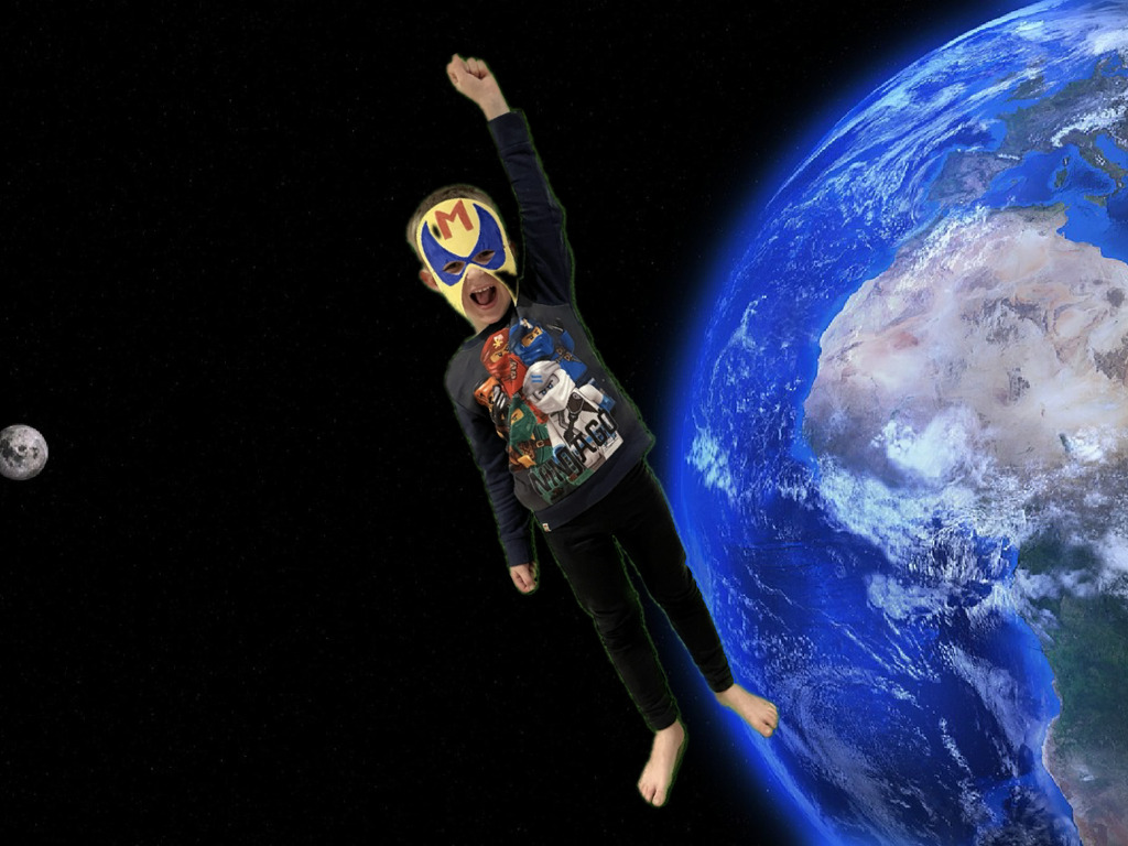 - Använd sedan greenscreentekniken för att förflytta superhjälten ut i rymden.
