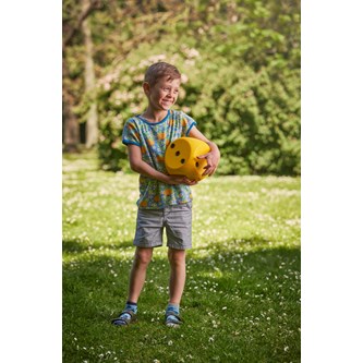 1. Ställ er i en ring med tärningen i mitten så alla ser den. Börja med att prata om vad man kan göra för rörelser med kroppen, t.ex. blinka, hoppa, stå på ett ben, osv.