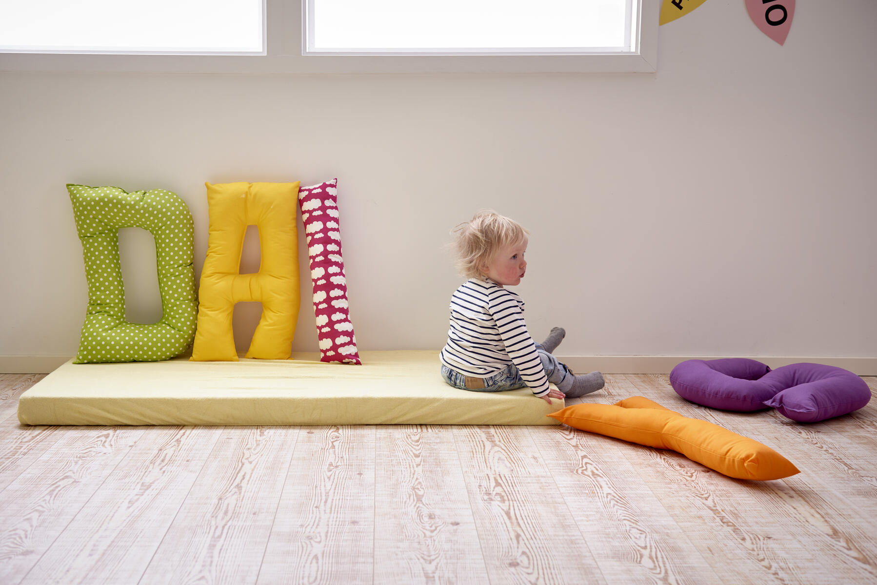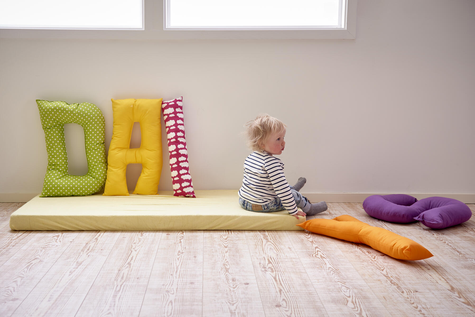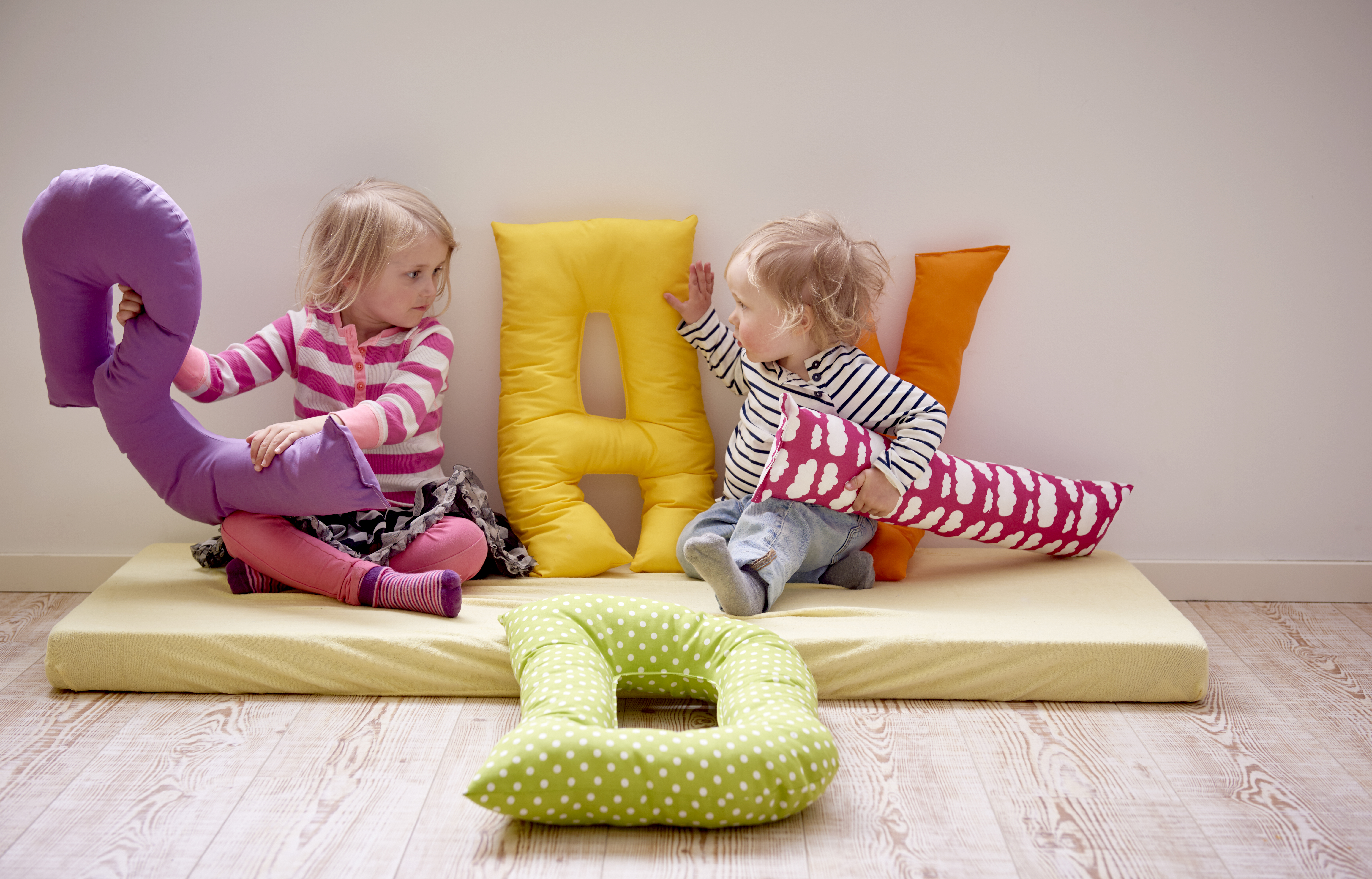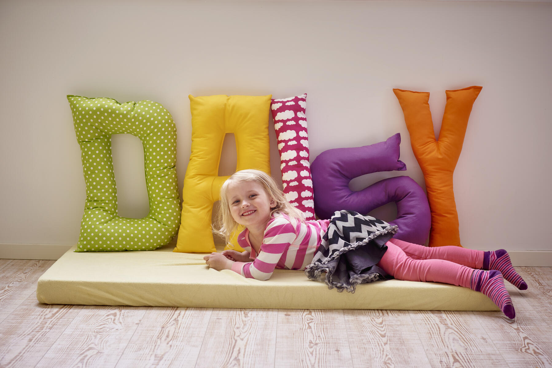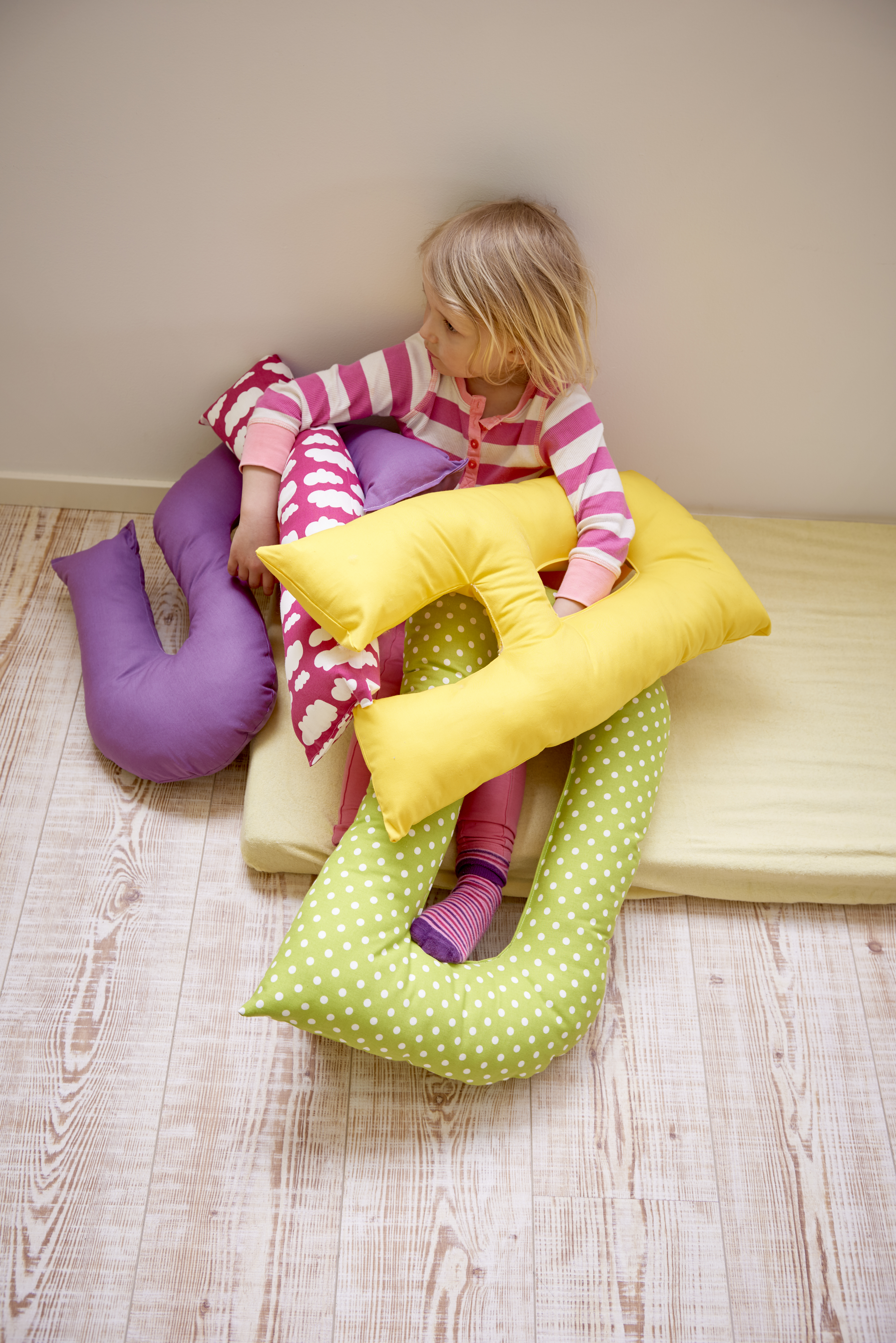 Nåla fast bokstäverna på dubbelvikt tyg. Klipp ut.