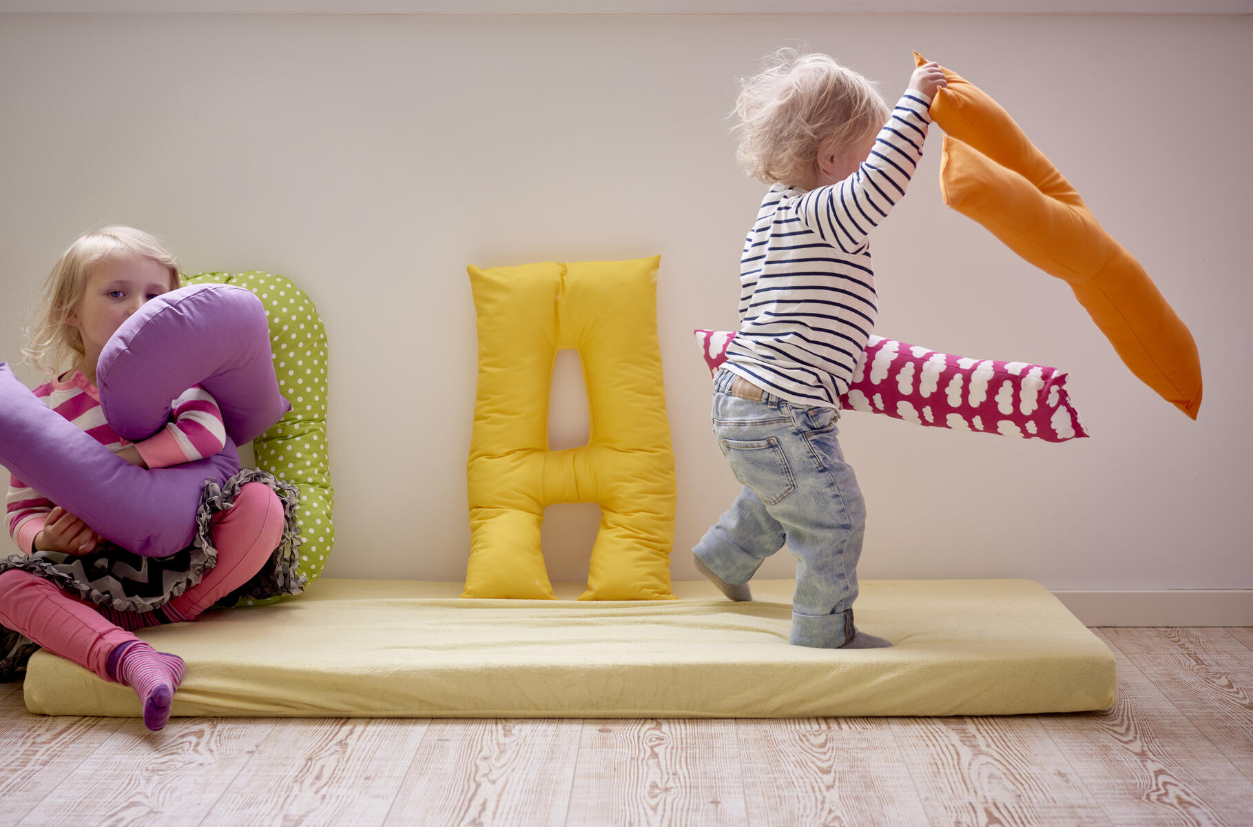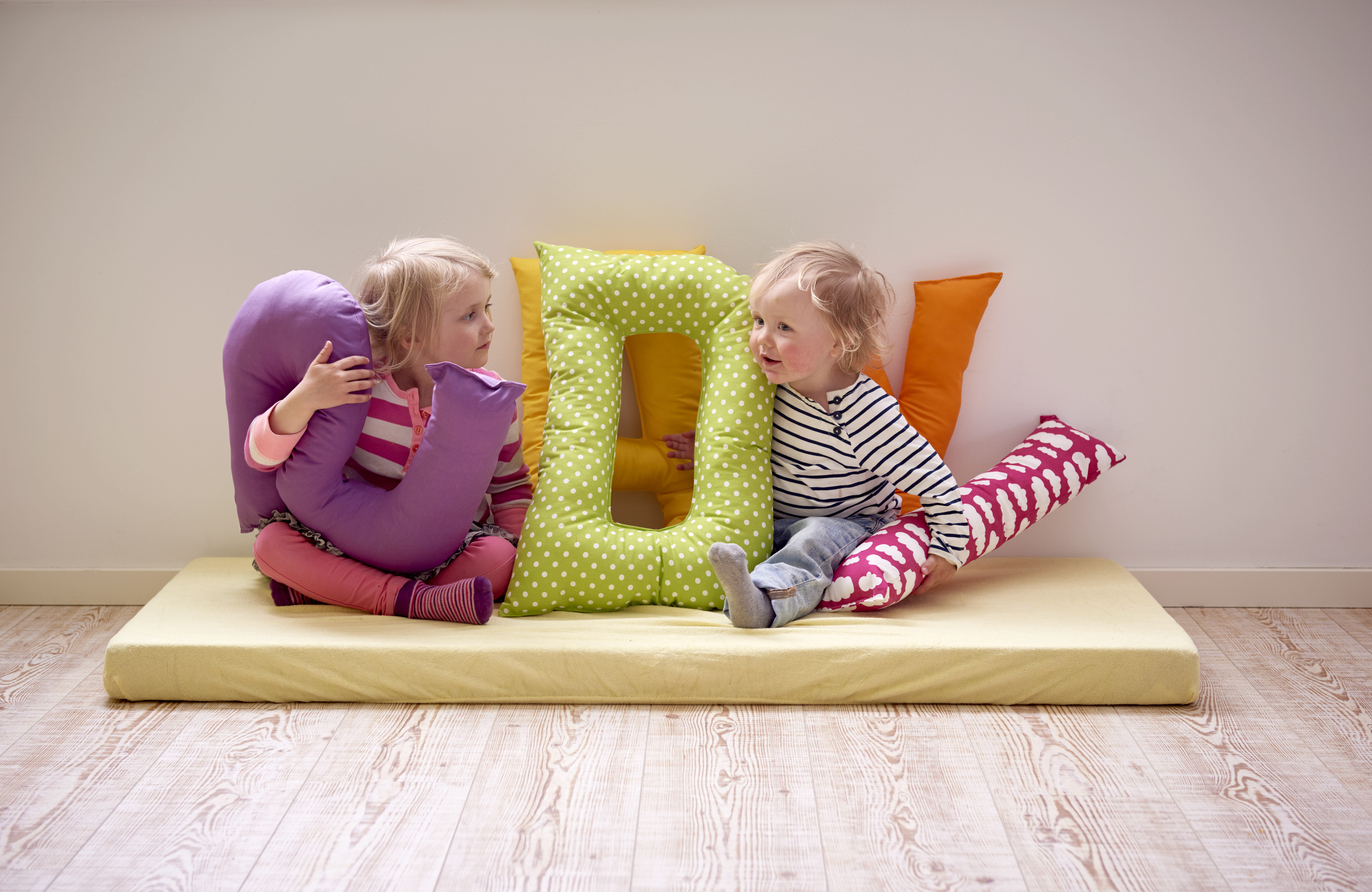 Sy ihop kanterna, rätsida mot rätsida. Lämna en liten öppning (ca 20 cm) för att kunna stoppa kuddarna.