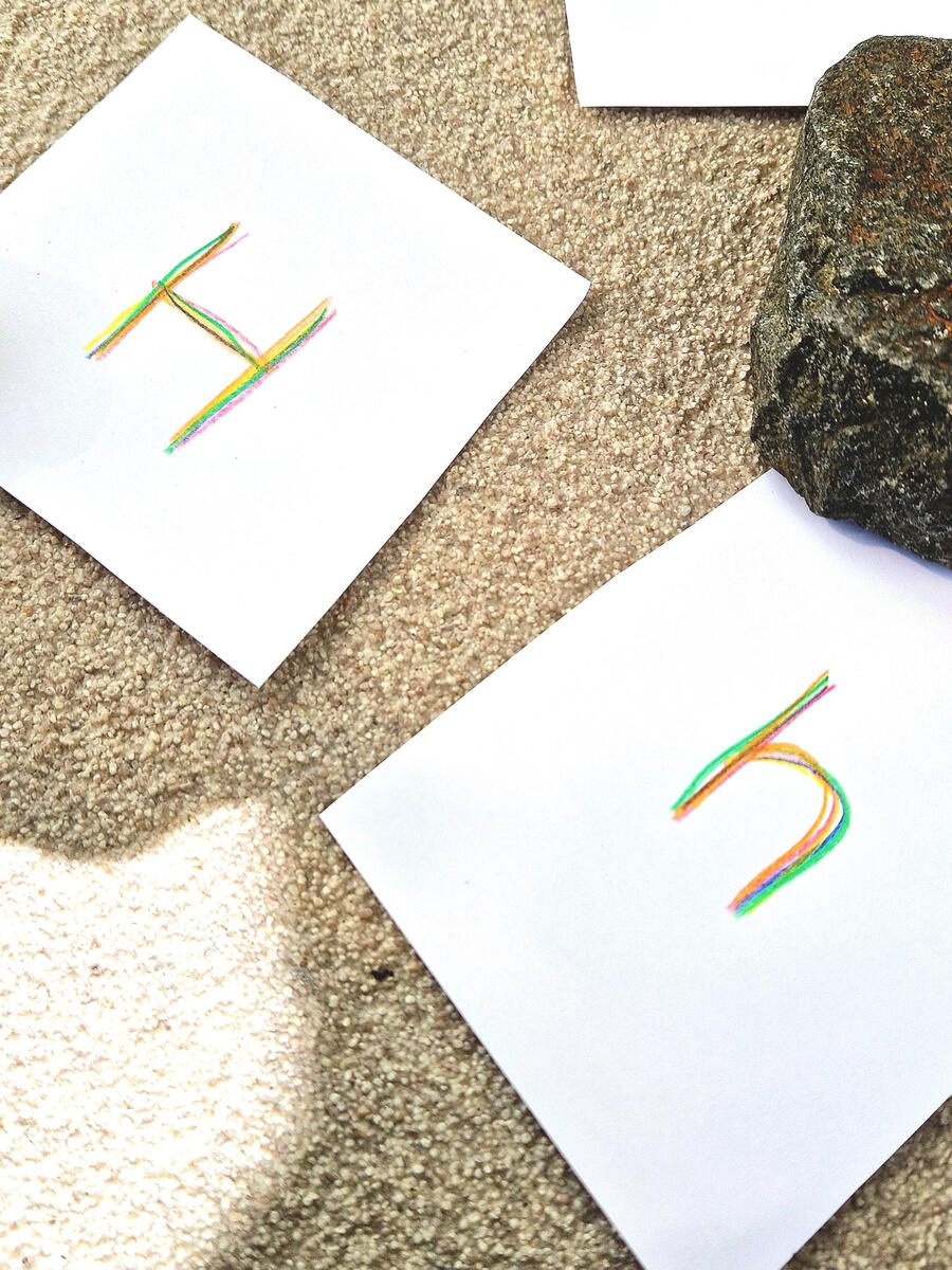 - Dela ut pennor eller kritor i olika regnbågsfärger, barnen får sedan öva på skrivrörelsen på ett papper, första gången blir att rita av stenen.