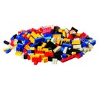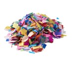 I vårt exempel har vi använt silkespapper, paljetter, LEGO, fjädrar, knappar och plasthattar.