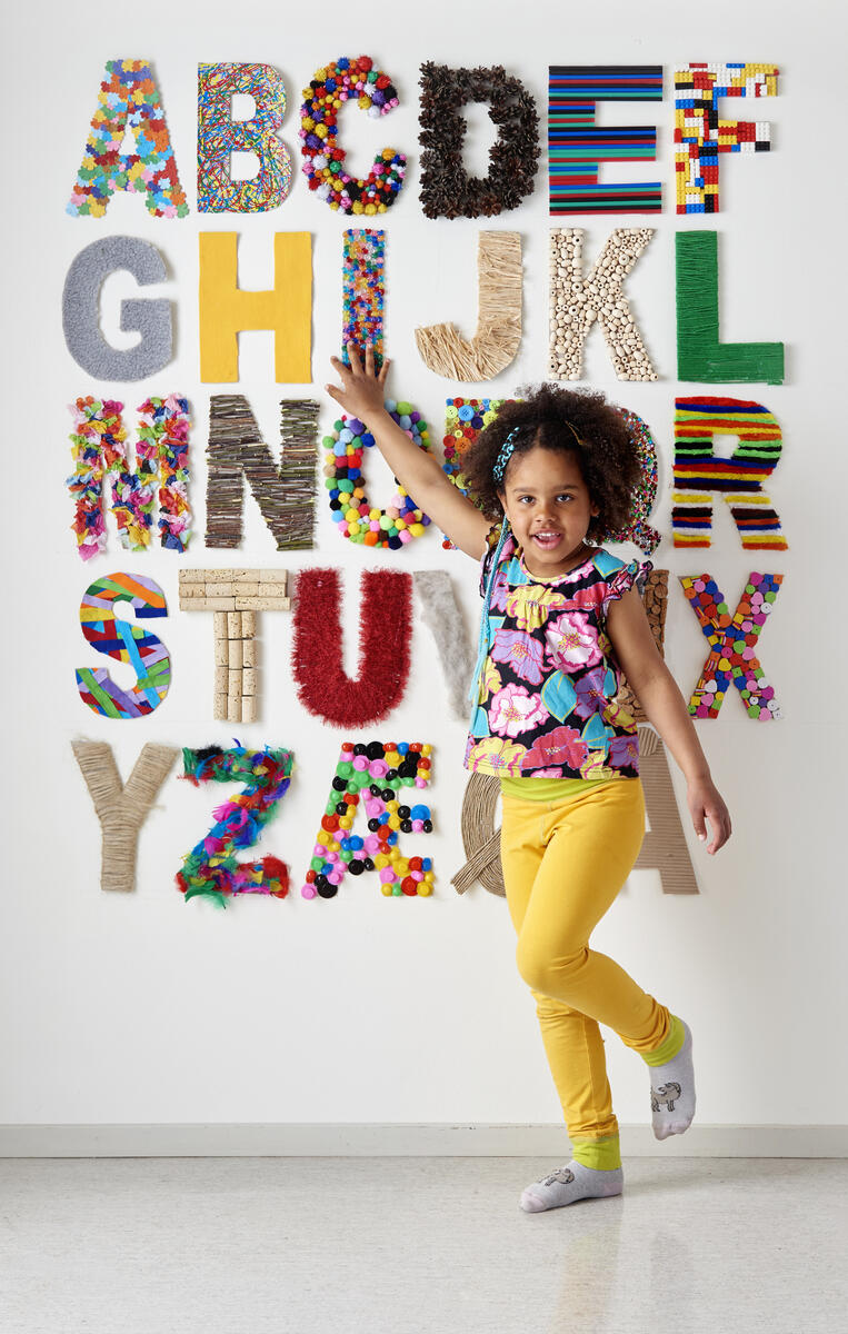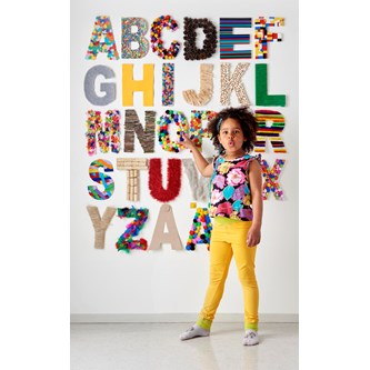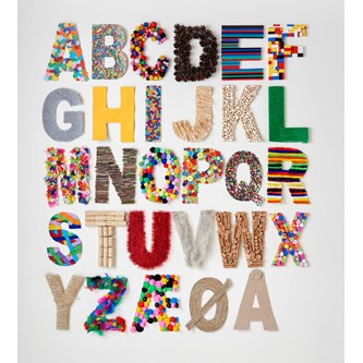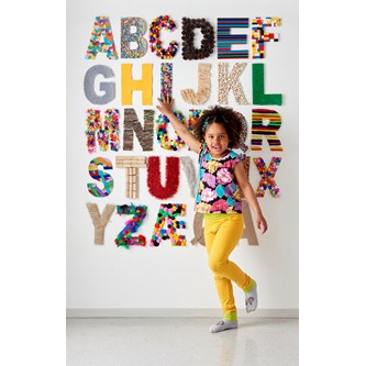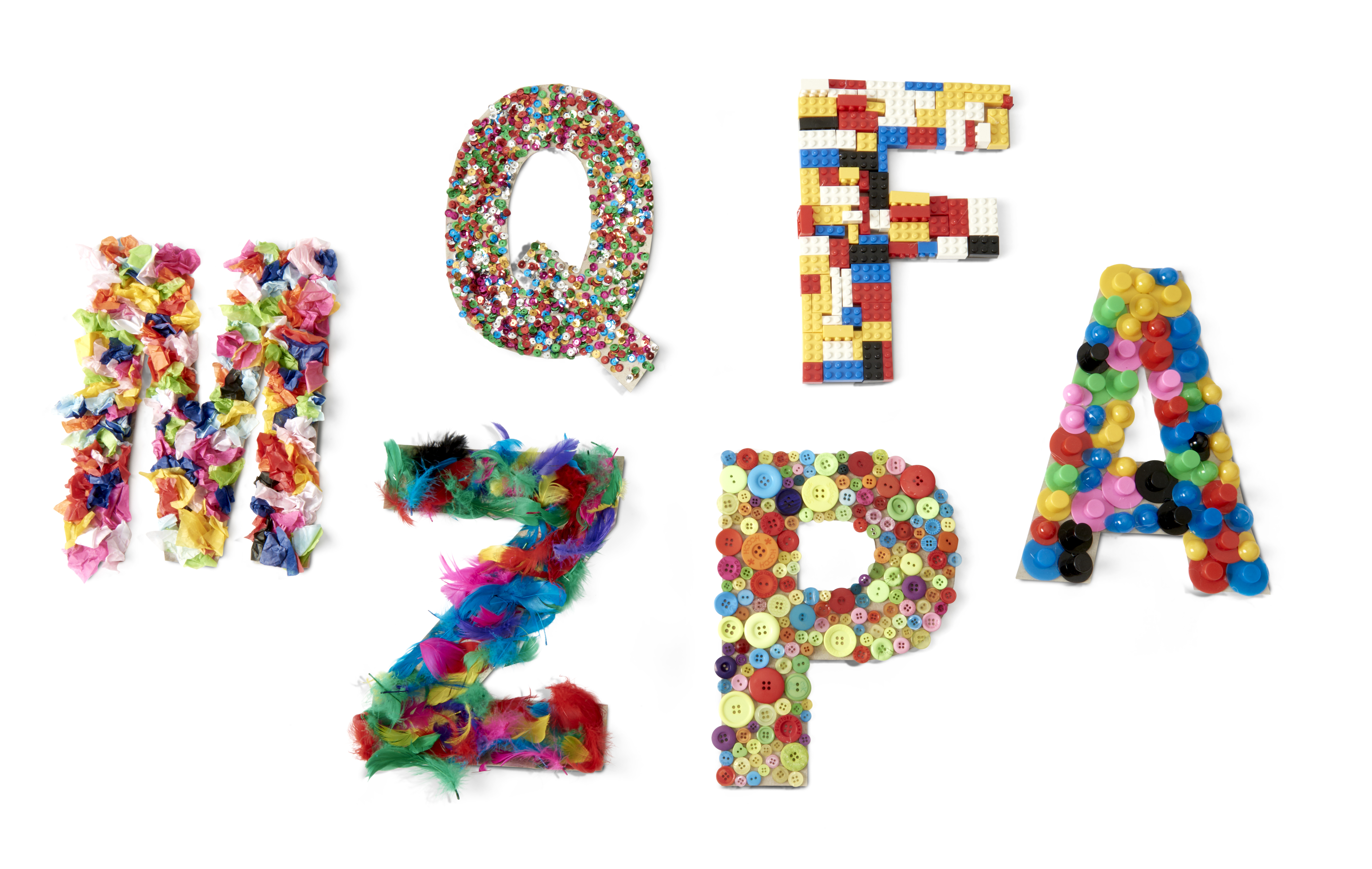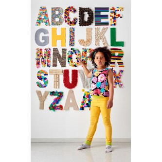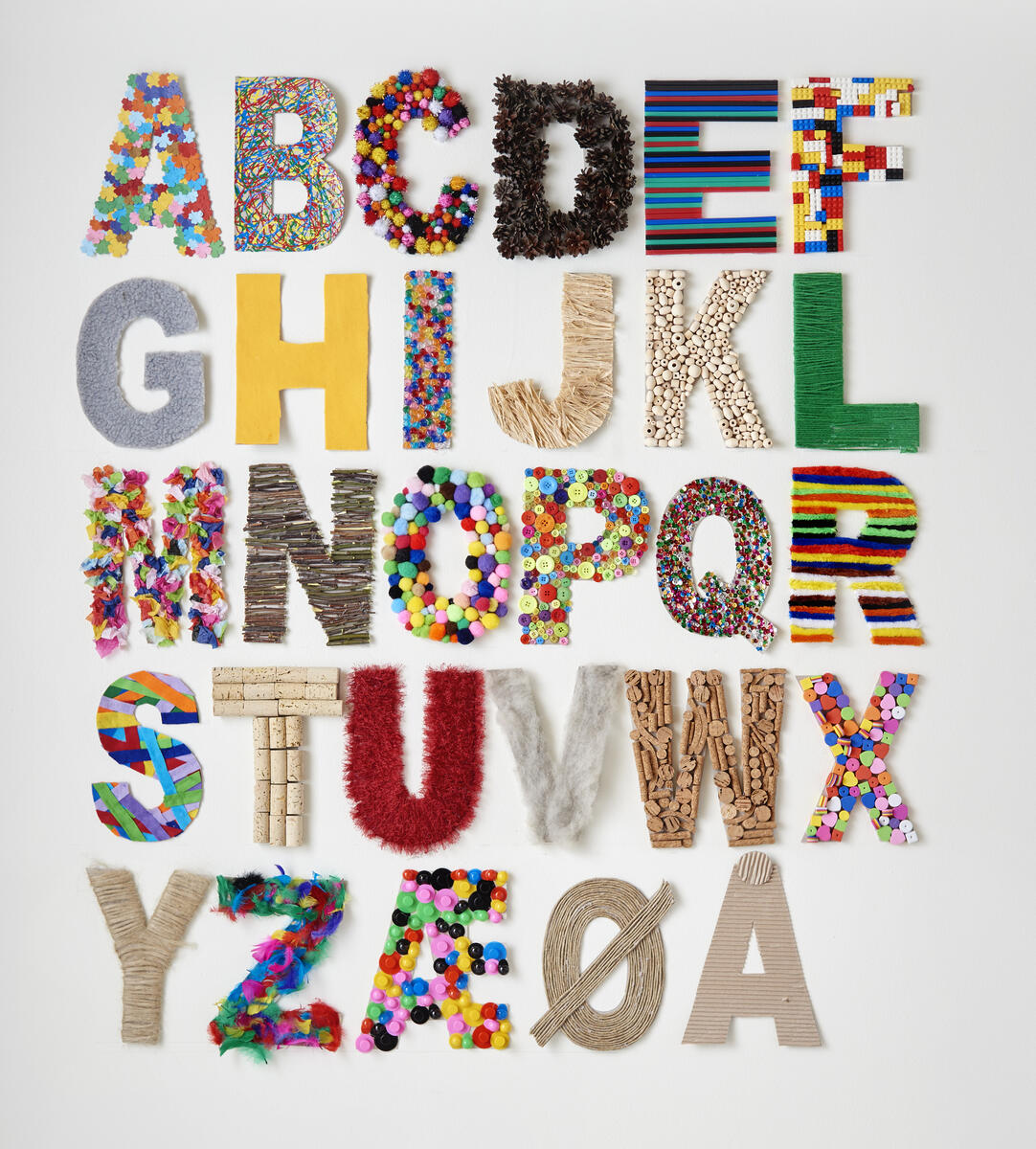 Välj olika material som ger en yta med olika strukturer och klistra fast på bokstäverna.