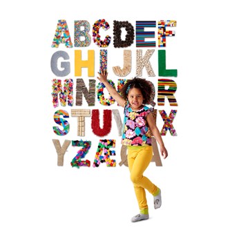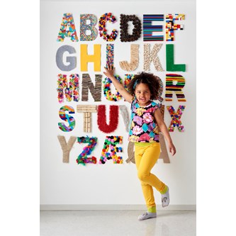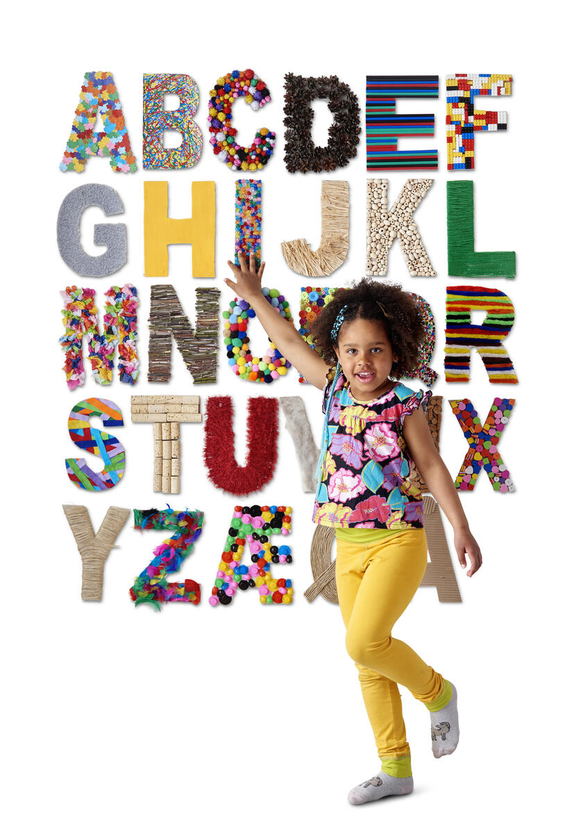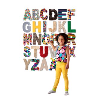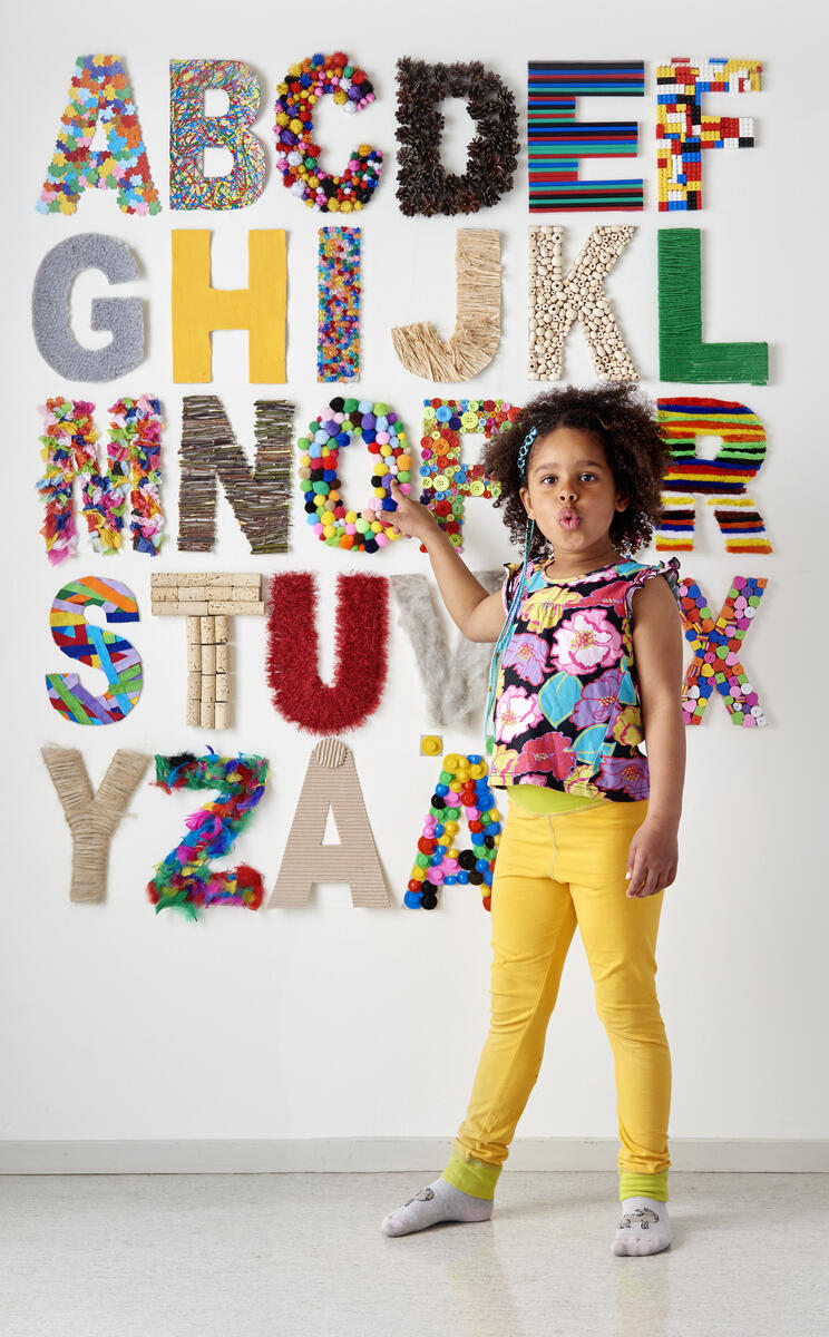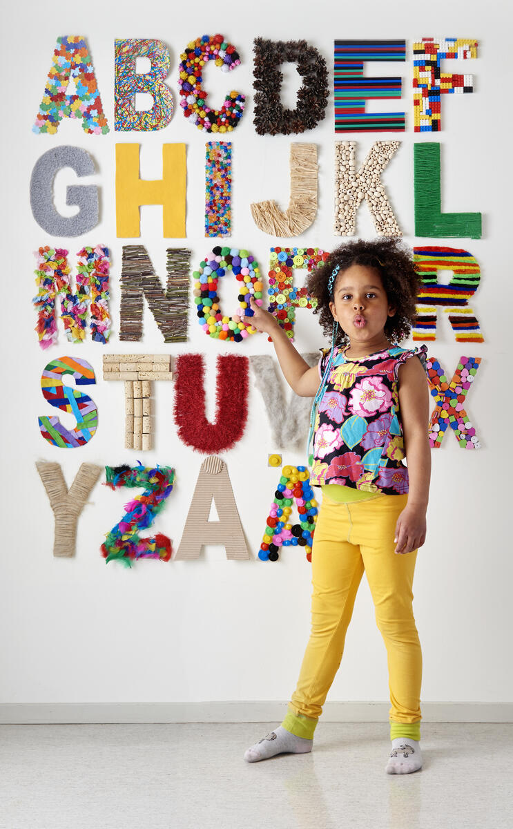 Välj olika material som ger en yta med olika strukturer och klistra fast på bokstäverna.