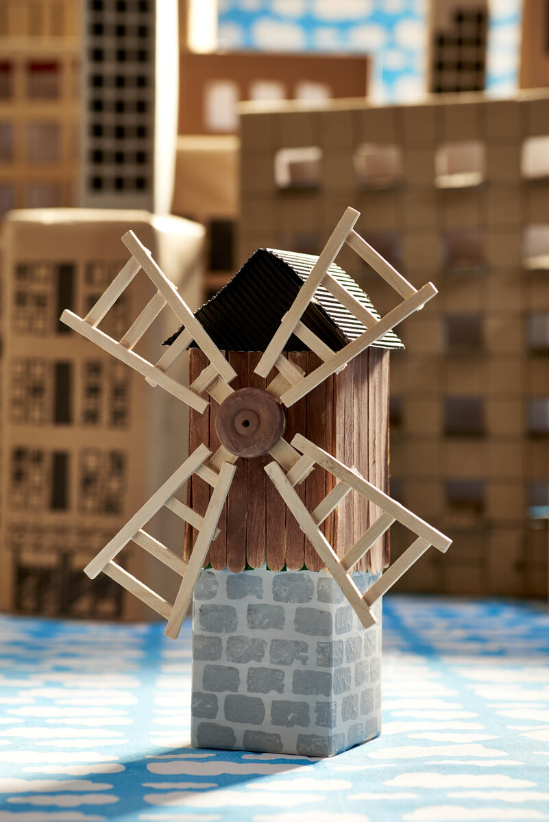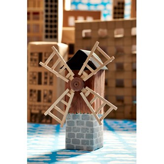 Limma fast ett trähjul på framsidan av väderkvarnen.