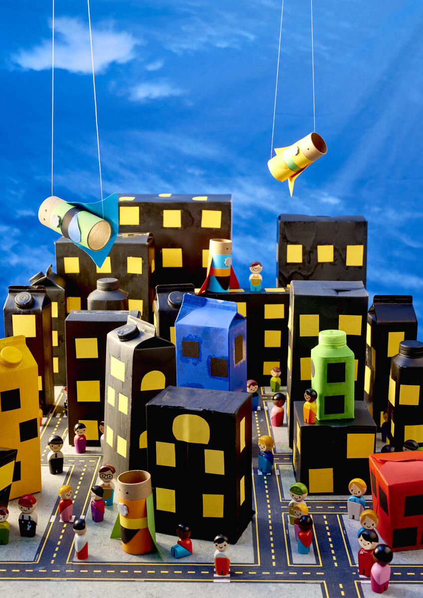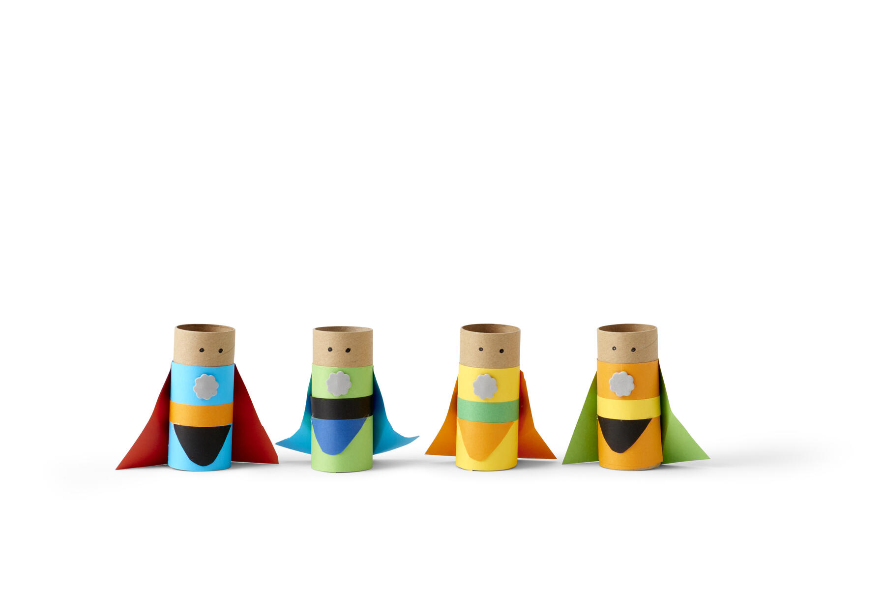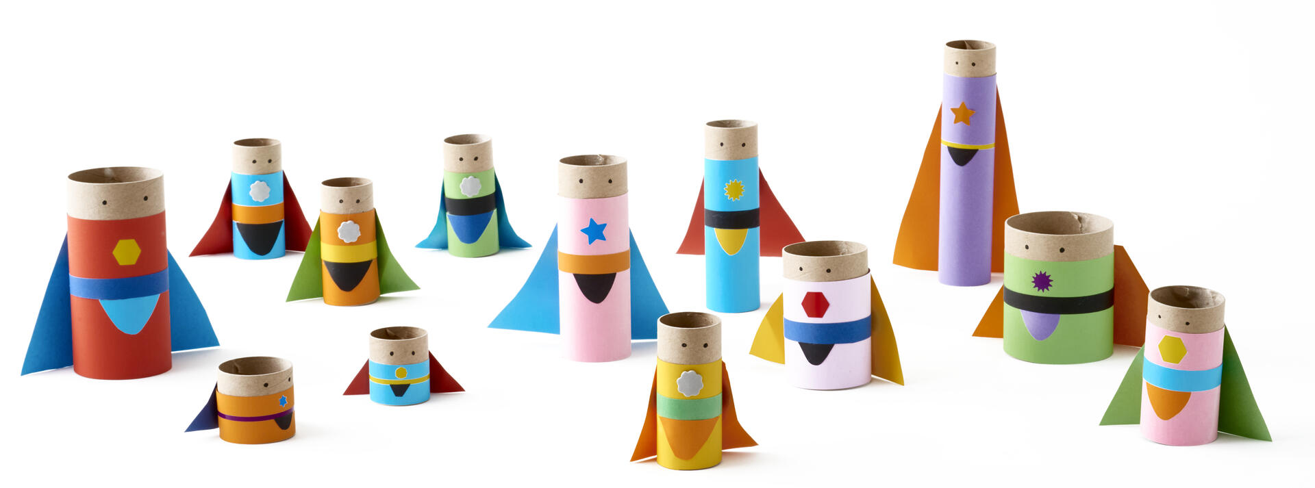 Superhjältarna är gjorda en en papprulle som bas.