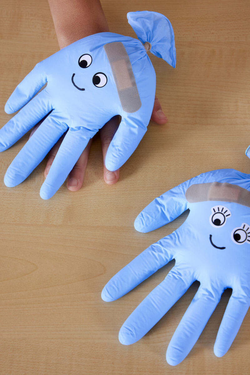 - Trä på en handske på handen och sätt på en handske till över den första handsken.