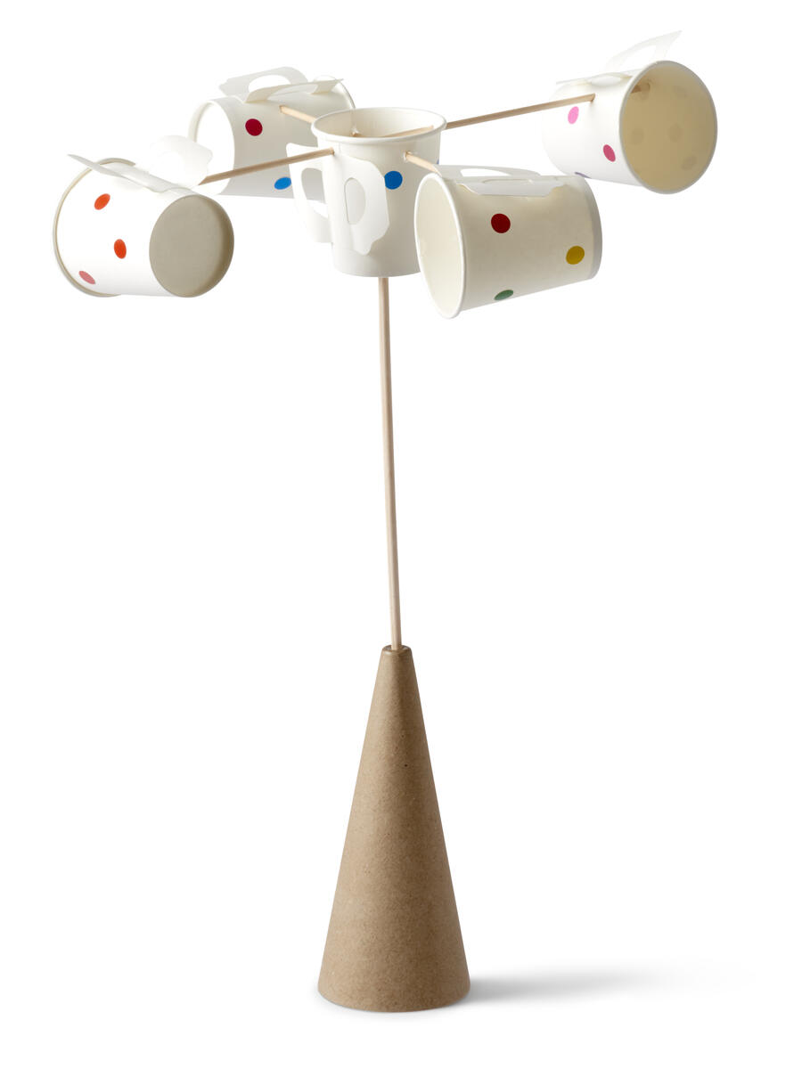 Tänk på att de fyra muggarna ska vara liggande, se bild. Limma muggarna för stabilitet.