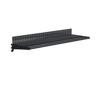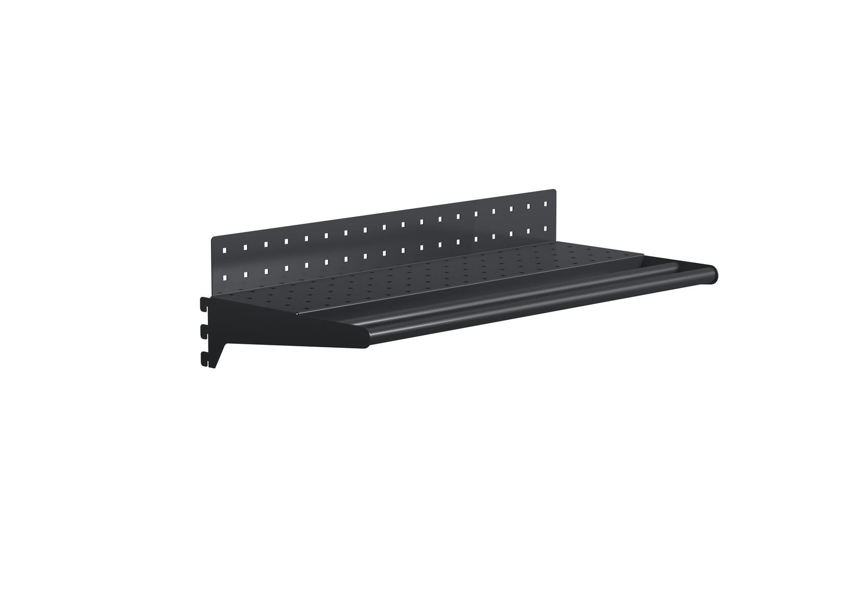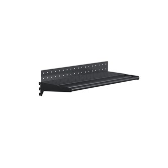 Använd till Wille skensystem. Passar till både vägghängda och fristående modeller. Enkel att justera i höjd. Hylla i perforerad plåt. Plats för krokar, beställs separat, som kläms på. Även anpassad för galgar. Djup 32 cm.