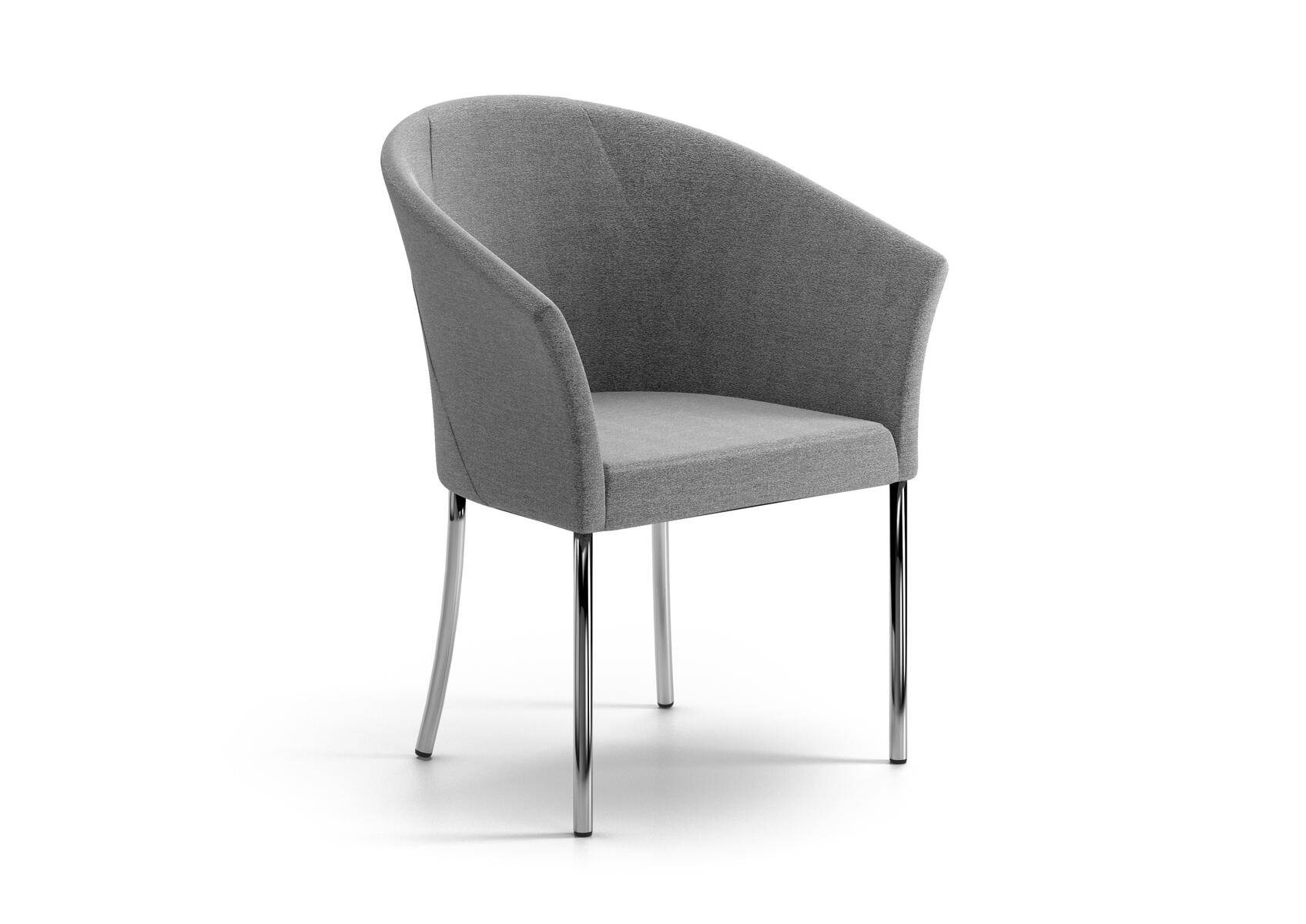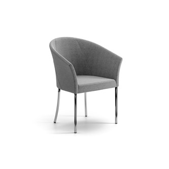 Ergonomiskt, stoppat ryggstöd stöder rygg och armar och den breda sitsen säkerställer komfort. Trästomme och stoppning i kallskum. Pulverlackat metallstativ.