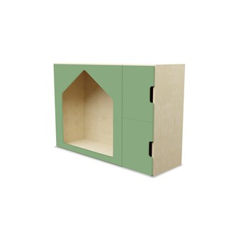 Fixa färdigmodul gjord som ett krypin i form av en grotta. Stomme tillverkad i björkplywood med front av målad 15 mm MDF. För att undvika tipprisk ska fristående moduler ha stödben med 2 låsbara hjul. Moduler med ben eller sockel ska fästas mot vägg, gäller moduler högre än 80 cm. Kombinera gärna med Fixamadrasser. I satsen ingår bas 38426-609, hylla 38242-609, front 83371 och 2 dörrar 38492. Svanenmärkt, licensnummer 5031 0099.