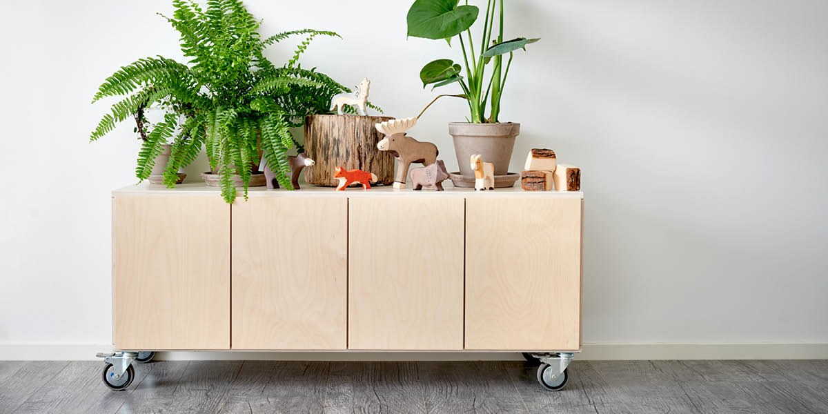 3 st passar perfekt under Fixa bänk. Gjord i tålig björkplywood. Rullar enkelt på 4 hjul. Handhål på 2 sidor för att enkelt kunna dra ut. B45xH34xD45 cm. Rengör med fuktig trasa eller dammsug. Monterad. Svanenmärkt, licensnummer 5031 0099.