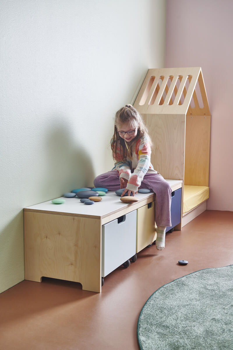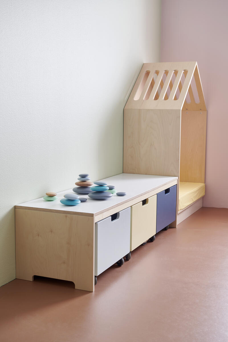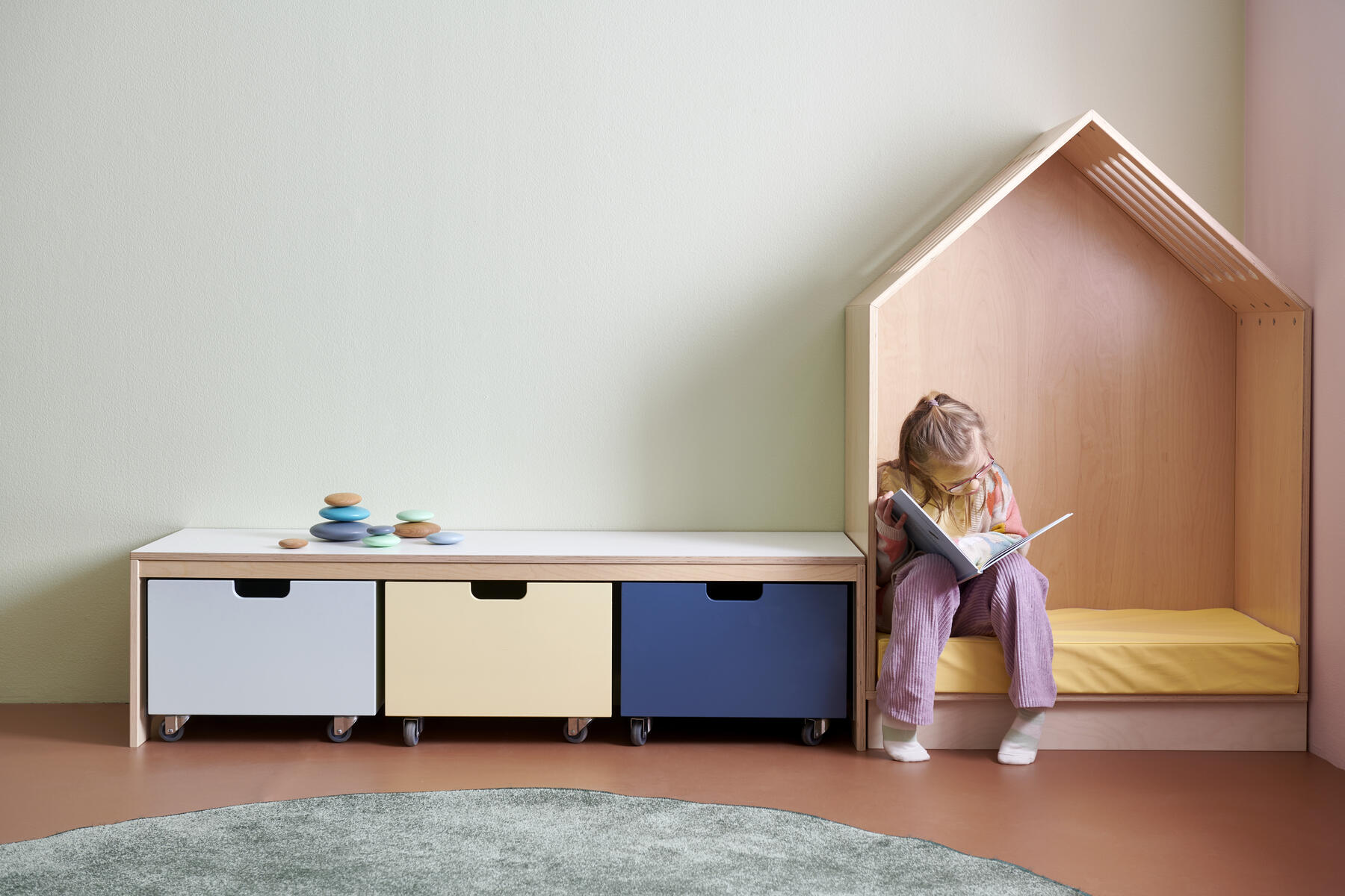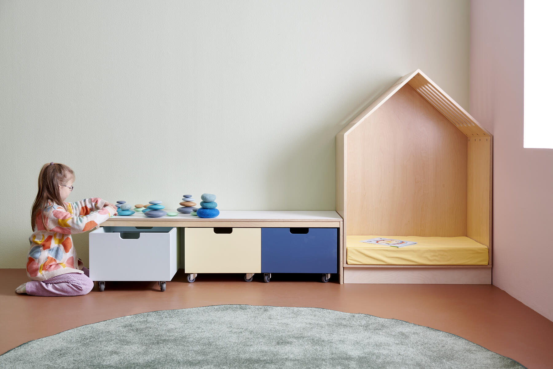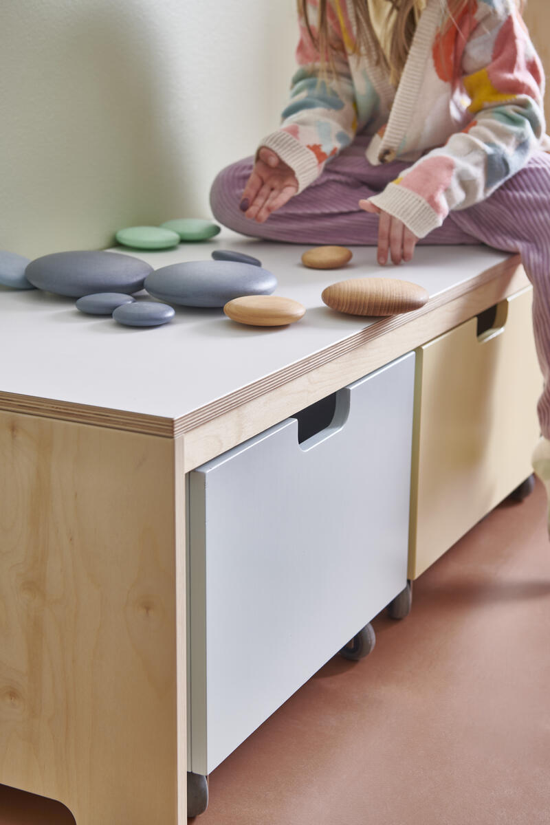 3 st passar perfekt under Fixa bänk. Gjord i tålig björkplywood. Rullar enkelt på 4 hjul. Handhål på 2 sidor för att enkelt kunna dra ut. B45xH34xD45 cm. Rengör med fuktig trasa eller dammsug. Monterad. Svanenmärkt, licensnummer 5031 0099.