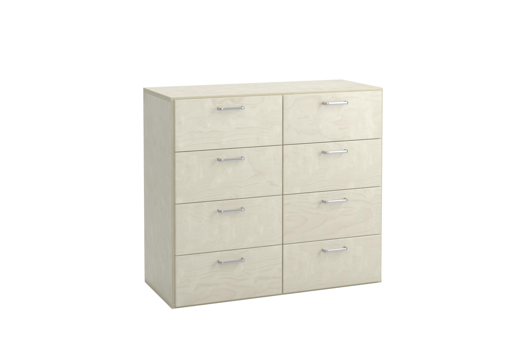 Färdigmonterad förvaring med 8 lådor med handtag. Fixa 3:2 kan enkelt kombineras med alla andra Fixamoduler. Köp gärna till underrede. Mått: B88xH79xD36 cm. Innermått lådor: B37 D30,5 H13 cm. Svanenmärkt, licensnummer 5031 0099.