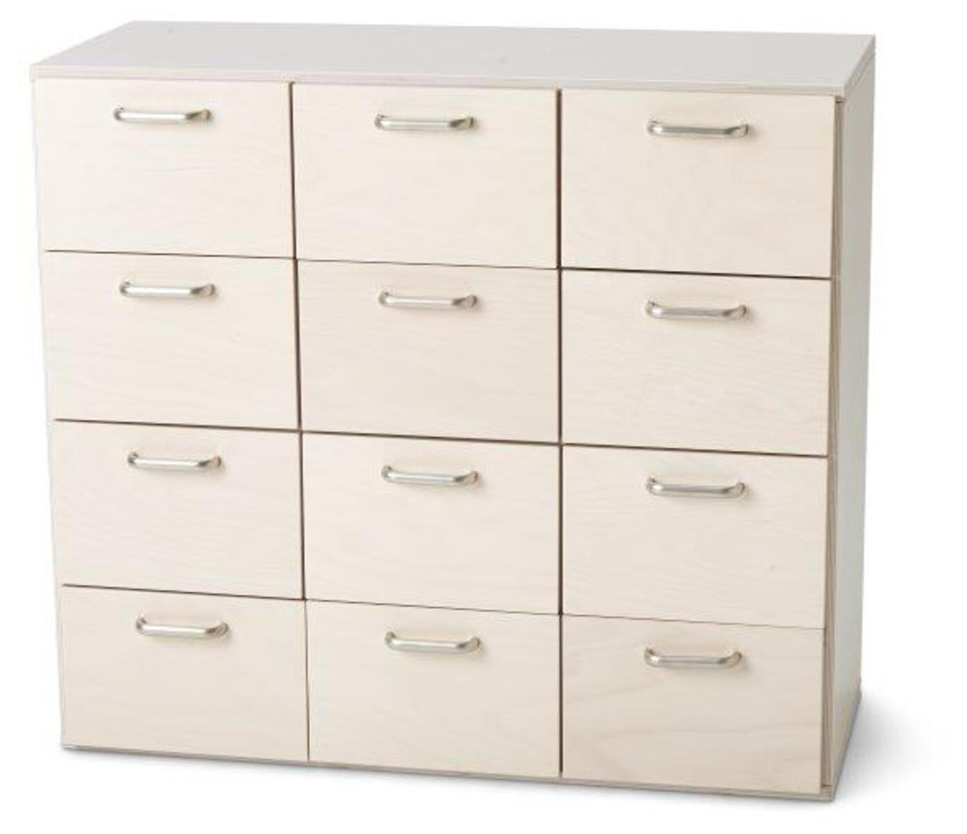 Färdigmonterad elevförvaring/byrå med 12 lådor med handhål. Fixa 3:2 kan enkelt kombineras med alla andra Fixamodeller. Köp gärna till underrede. Använd stödben vid placering fritt i rummet. Mått: B88xH79xD36 cm. Innermått lådor: B37xD30xH7 cm. Svanenmärkt, licensnummer 5031 0099.