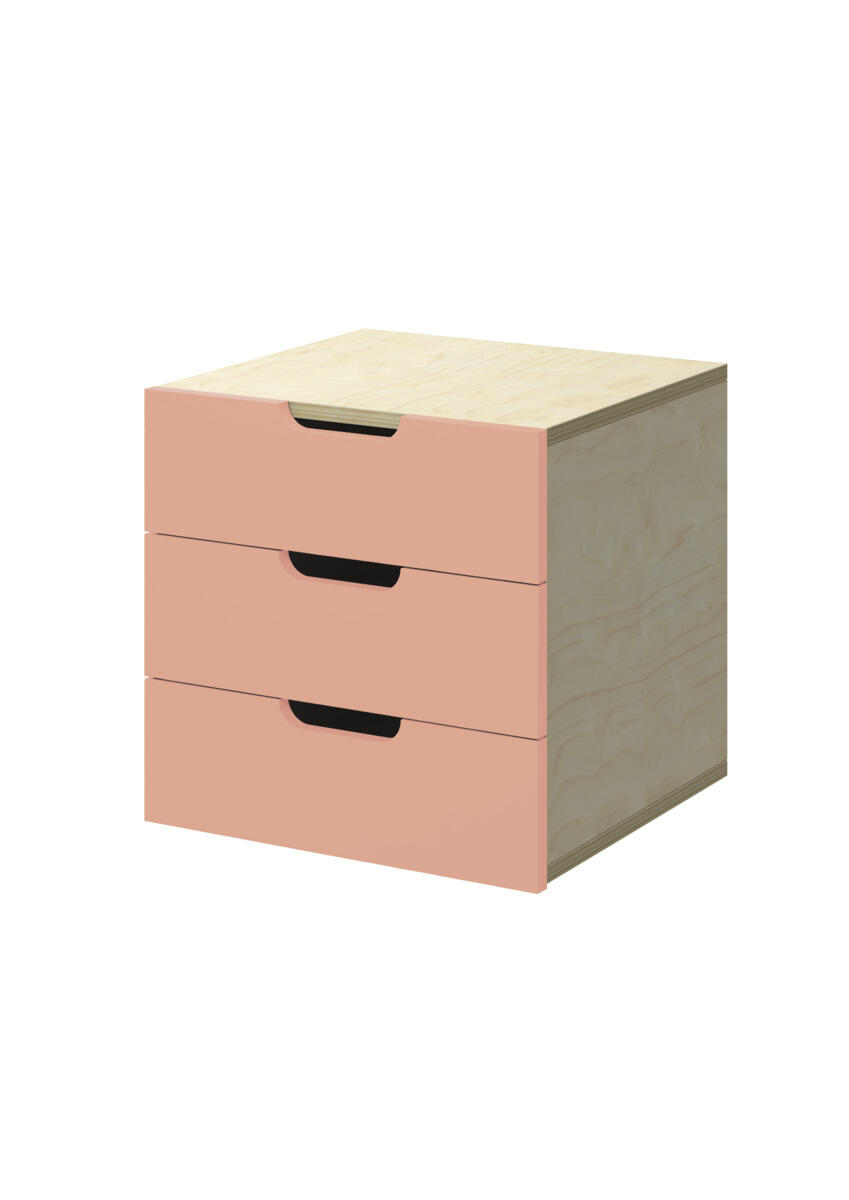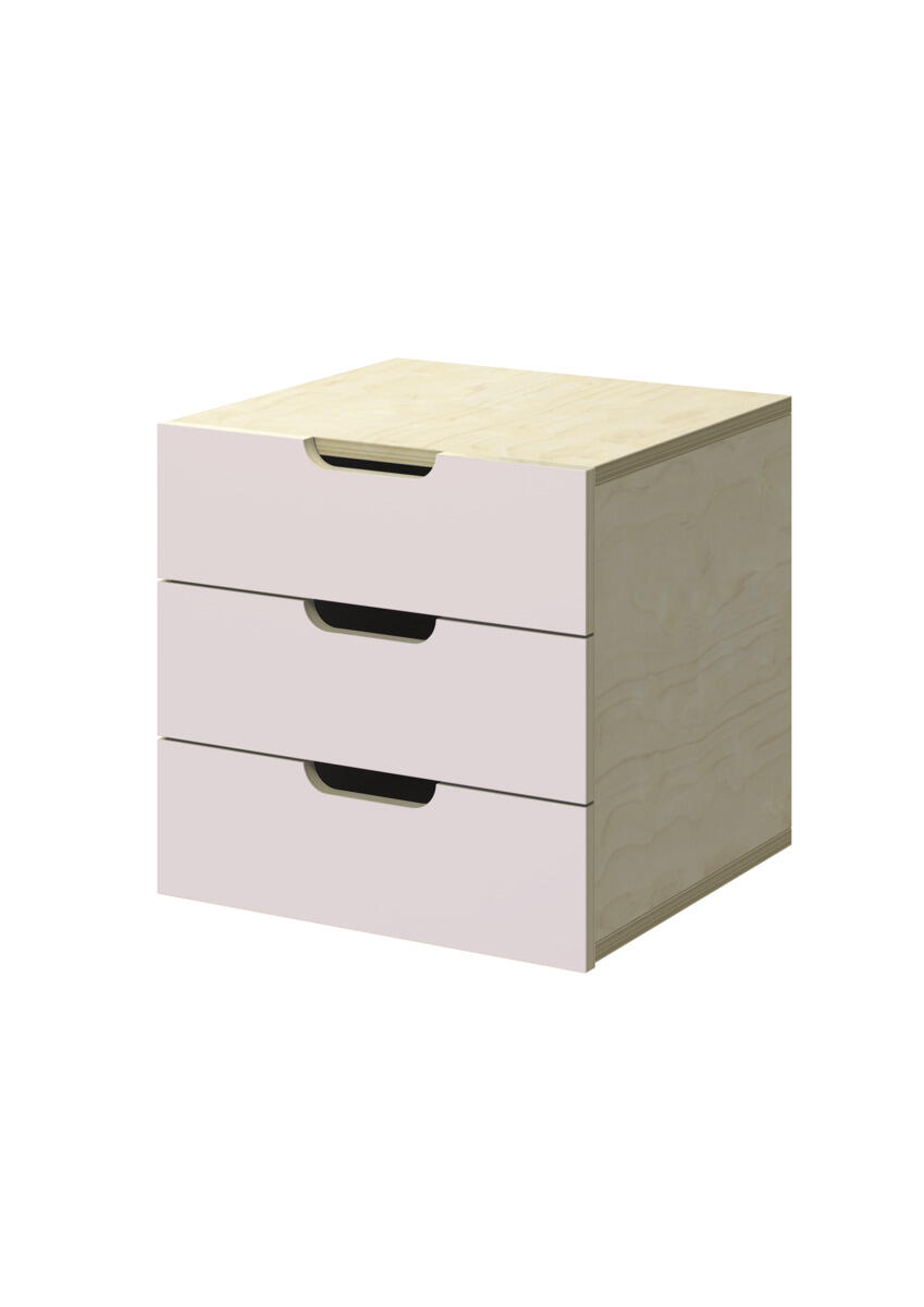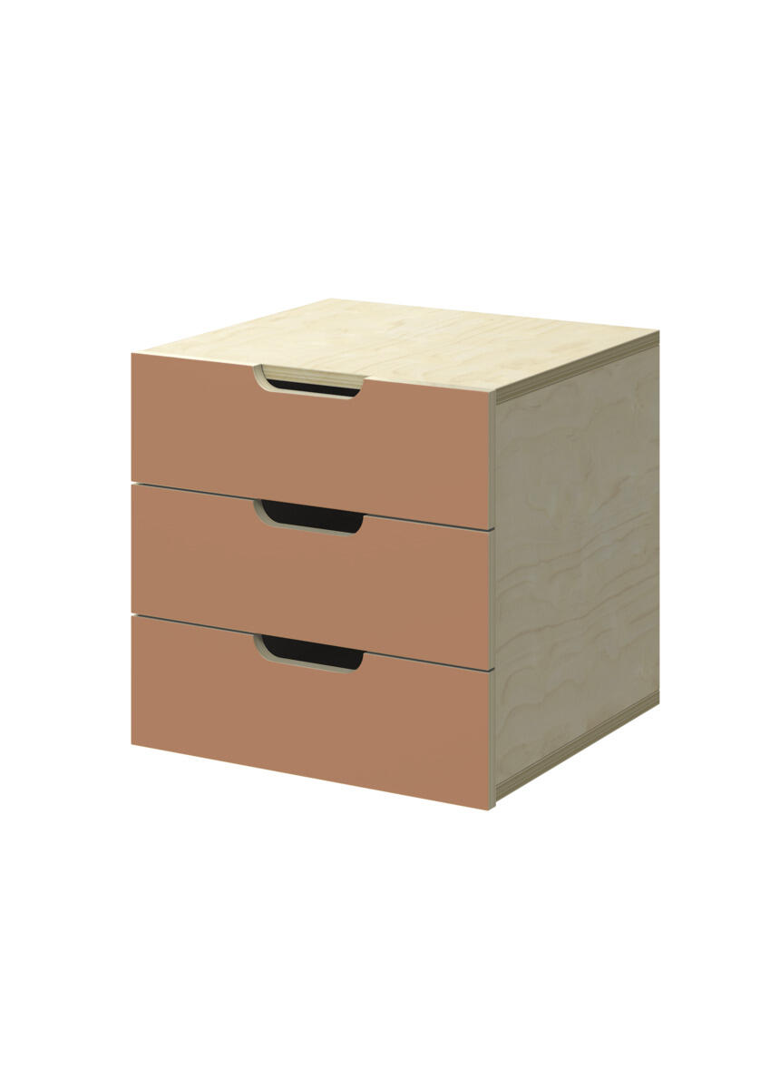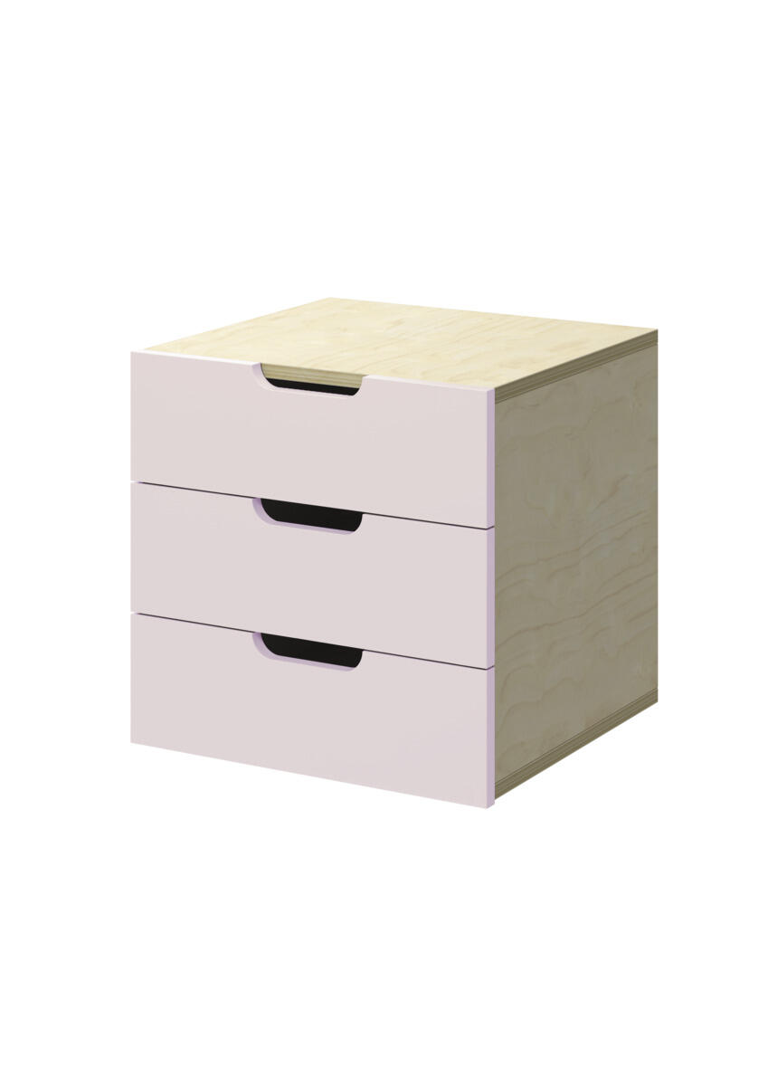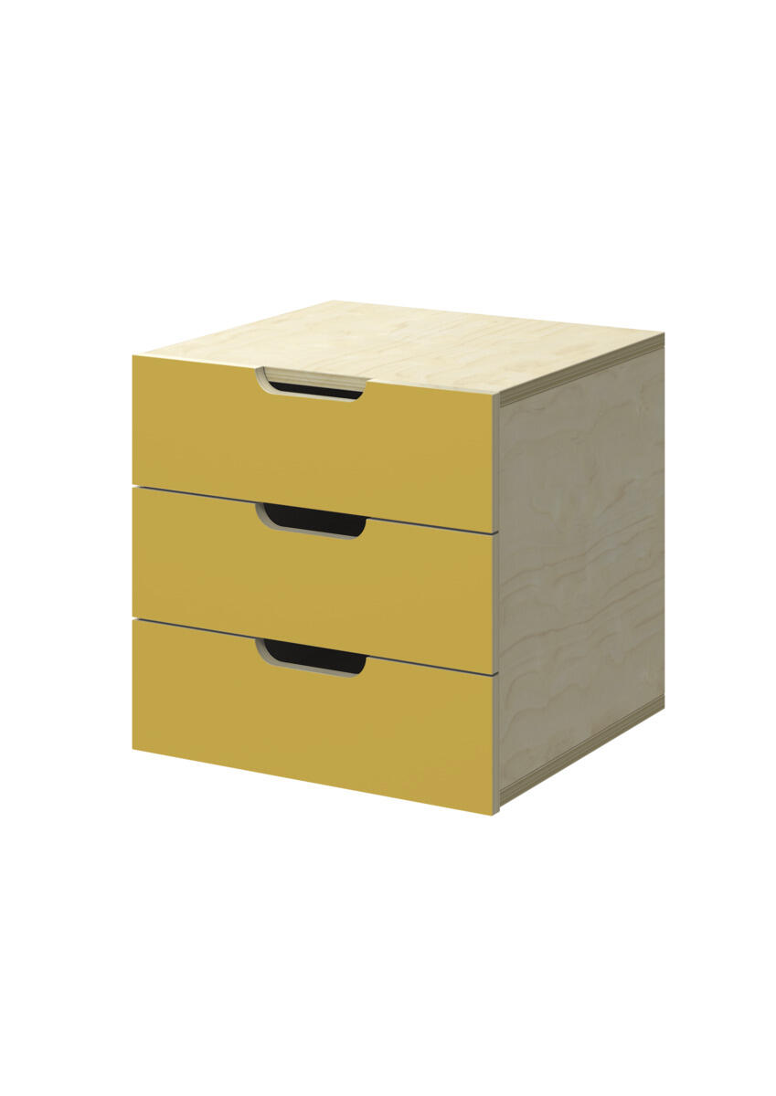 Lådinsats med 3 lådor, passar i ett fack. Handhål som handtag. Lådans storlek 28,5x30x6 cm. Insats 37x36x35 cm. Lådor utan lådstopp. Svanenmärkt, licensnummer 5031 0099.