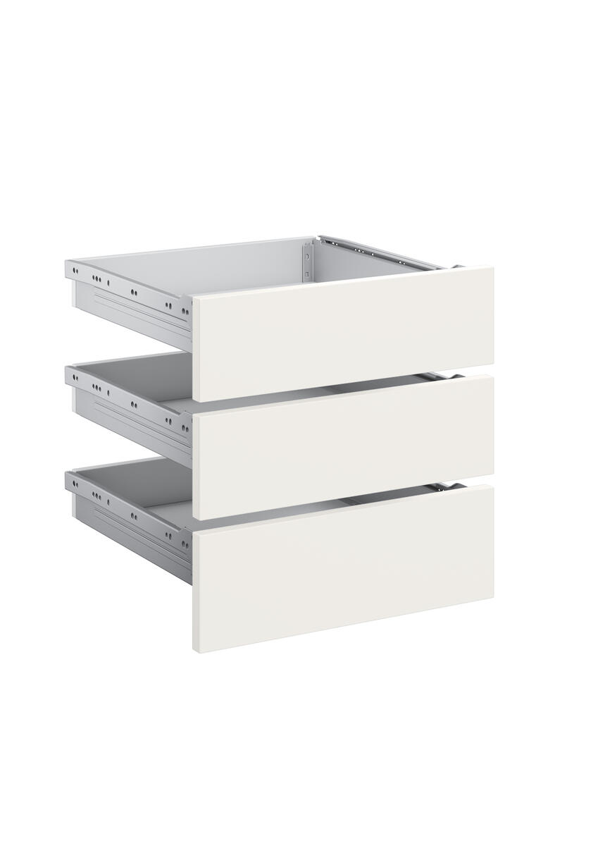Beställ alltid via säljare för att säkerställa ritning. Elevförvaring som byggs efter eget önskemål och levereras färdigmonterad. Stommar har förborrade hål i sidopaneler/skiljeväggar för att kunna erbjuda alla tänkbara kombinationer. Denna stomme har tre öppna hyllor, med bottenplatta som är något bredare för ökad stabilitet. 4 hjul varav två är rörliga och med lås på ena kortsidan. De andra två är fasta, vilket gör förvaringen stabil vid förflyttning. Lägg till dörrar eller lådor enligt önskemål och levereras färdigmonterad. Elevförvaringen kan också användas helt öppen. Lådor och dörrar har en smal öppning som agerar postfack och öppnare. Material 18 mm spånskiva med laminat. Kantband i ABS. Stomme med ben och sockel ska fästas i vägg med medföljande väggbeslag. Skruv för detta ingår inte. Ben, sockel och hjul bygger 10 cm i höjd. Innermått fack: B38xD38xH38 cm. Bottenplatta D44,5 cm.