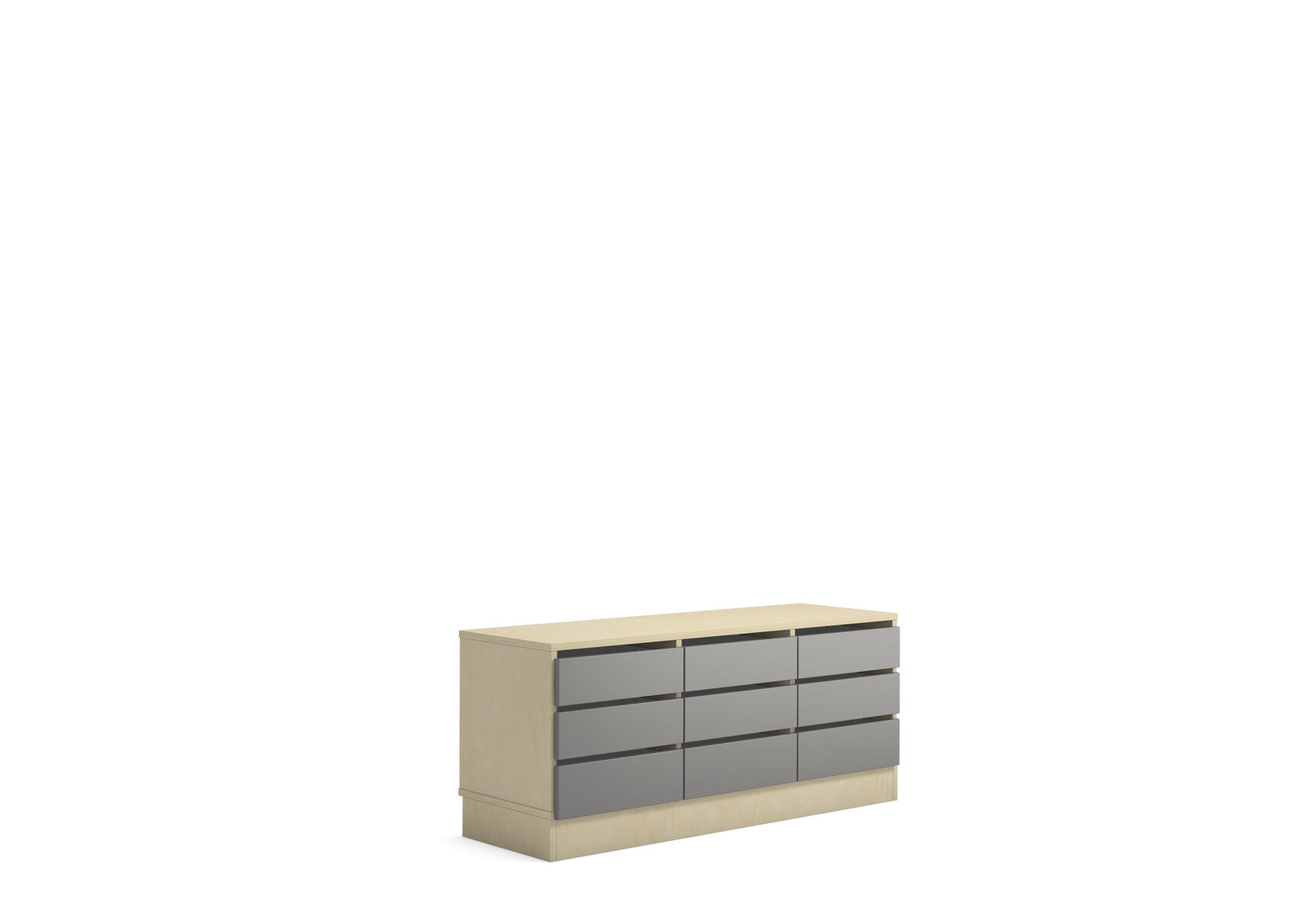 Beställ alltid via säljare för att säkerställa ritning. Elevförvaring som byggs efter eget önskemål och levereras färdigmonterad. Lådor till stomme med ben eller sockel. Lämnar en öppning om 1,5 cm som agerar postfack och öppnare. Material 18 mm spånskiva med laminat. Kantband i ABS. Mått front: B38,5xH18,5 cm. Lådans innermått: B34xD33,5xH10 cm.