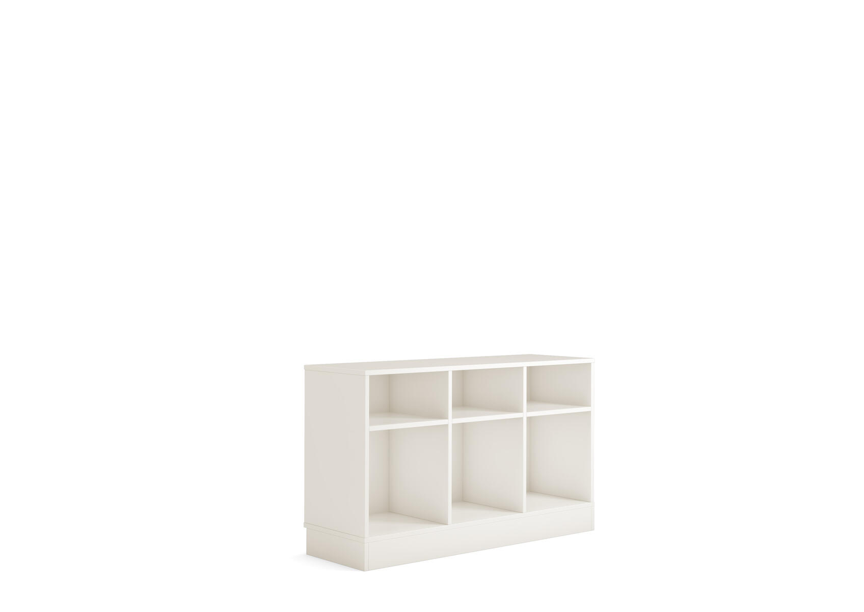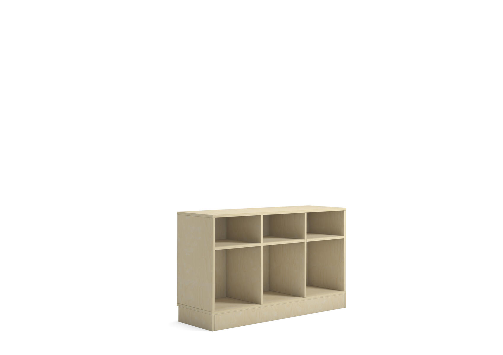 Beställ alltid via säljare för att säkerställa ritning. Elevförvaring som byggs efter eget önskemål och levereras färdigmonterad. Stommar har förborrade hål i sidopaneler/skiljeväggar för att kunna erbjuda alla tänkbara kombinationer. Denna stomme har tre stora och tre små öppna hyllor, med bottenplatta som är något bredare för ökad stabilitet. 4 hjul varav två är rörliga och med lås på ena kortsidan. De andra två är fasta, vilket gör förvaringen stabil vid förflyttning. Lägg till dörrar eller lådor enligt önskemål och levereras färdigmonterad. Elevförvaringen kan också användas helt öppen. Lådor och dörrar har en smal öppning som agerar postfack och öppnare. Material 18 mm spånskiva med laminat. Kantband i ABS. Stomme med ben och sockel ska fästas i vägg med medföljande väggbeslag. Skruv för detta ingår inte. Ben, sockel och hjul bygger 10 cm i höjd. Innermått fack: B38xD38xH18/38 cm. Bottenplatta D44,5 cm.