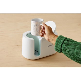 Skapa din muggdesign, fäst den på muggen och låt pressen göra resten. Används endast av vuxen i ventilerat utrymme. Ånga avges under värmeöverföringen. I paketet ingår Cricut Mug Press, USB-sladd för aktivering (produkten fungerar inte förrän den aktiveras med en dator med en USB-port och internetanslutning) och strömsladd.