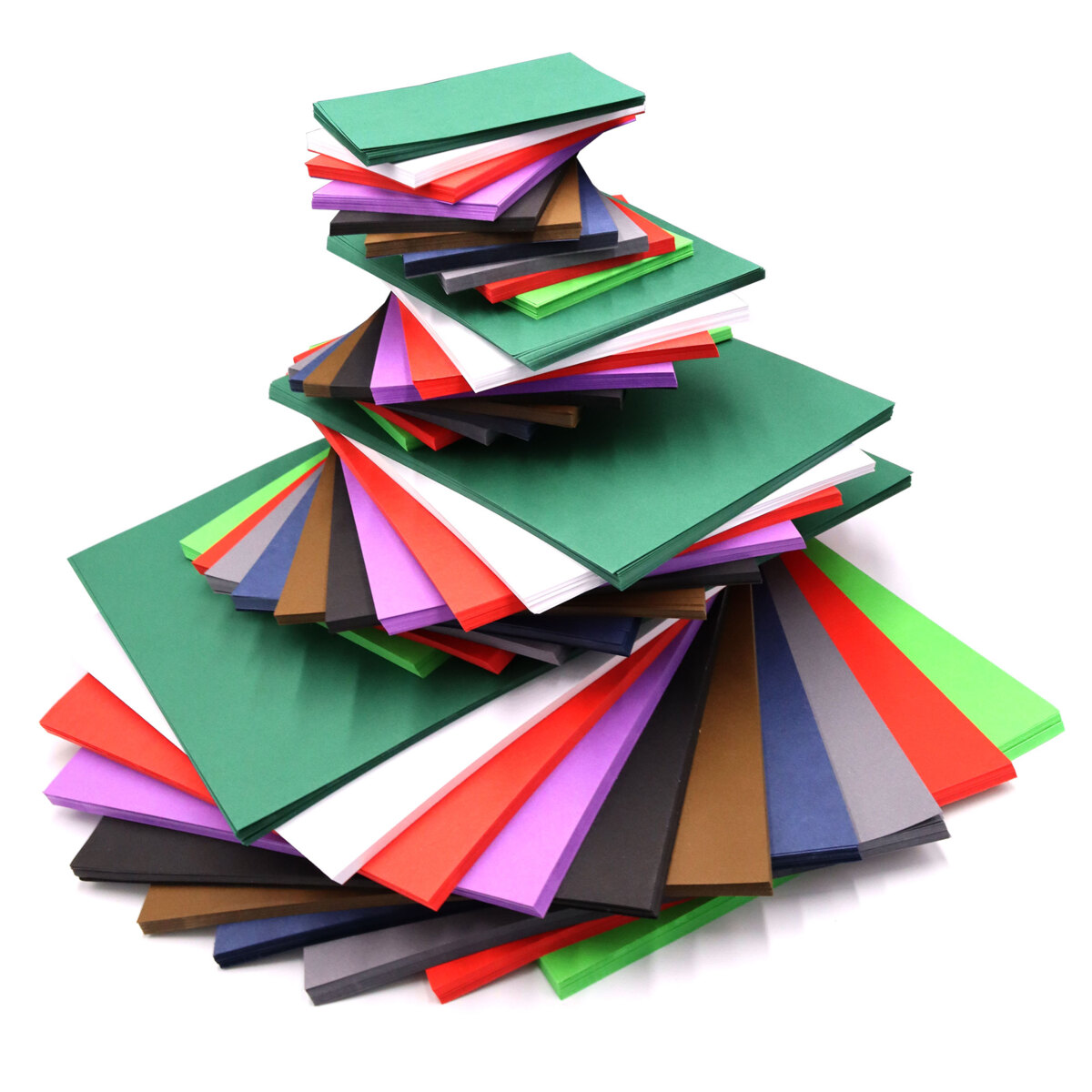 1 500 ark/fp. Lätt färgad kartong 180 g. Slät, halvglättad yta. Passar till grövre pappersvikningar och större detaljer till t.ex. kort och scrapbooking. Enkel att klippa och skära. Blandade färger och storlekar. 10 färger jämnt fördelade/storlek. Innehåller gul, orange, röd, ljusrosa, cyanblå, mörkblå, grön, mörkgrön, mörkbrun och svart. A6/800 ark, A4/400 ark, A3/200 ark, A2/100 ark. Svanen, licensnummer 30440101. PVC-fri.